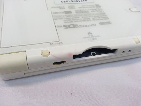 多少の傷汚れはあるものの、 年代物としては綺麗な状態だと思われます。 DSカードスロット付近に赤いスレ汚れがあり、 その部分のみやや汚れが目立ちます。