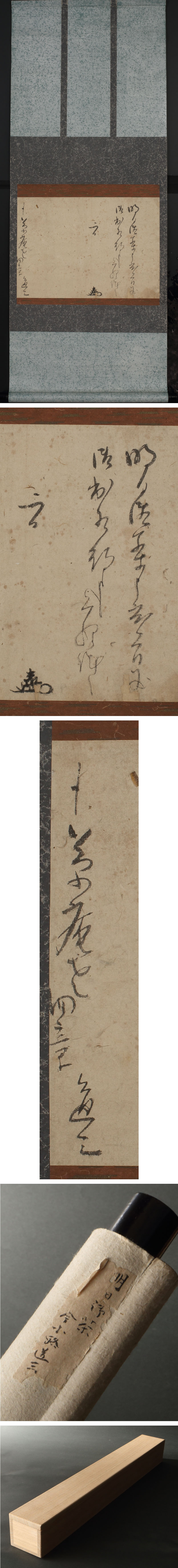 | 曲直瀬玄朔の消息です。 京の医師・望月宗庵(草庵)に宛てた書状で、明日の御茶への参加を請う旨が認められております。 望月宗庵は江戸前期の茶人・浄華院善隆の記録に「広橋大納言殿を主客として、公家衆三人と医者の望月宗庵および宗達という町人の計六人」を招いたことが挙げられるほか、鳳林承章の『隔冥記』でも鳳林と贈答が行われた様子が見えます。しかし明暦3(1657)年に「刀災に遭った(斬殺)」ことが触れられており、謎めいた末路を辿った人物として知られます。 尚、宗庵は初出とされる承応4(1655)年の記事に「望月草庵医被尋、初而当寺江被来也」とありますが、先立つ寛永12(1635)年の記事に「中宜老・祐嘉老・草庵老同伴也、草庵者祐嘉老子息也」ともあり、両者が同一人物とすれば鹿苑寺を訪問する以前に随庵(大覚寺宮空性法親王)の茶会で面会していた可能性を有し、公家衆との交友も納得することができます。更に、幕府医官に「望月忠庵」を代々名乗った家系があり、初代の重元が「道庵」を称し織田信長に仕えたほか、続く宗慶が台徳院(秀忠)・崇源院(お江)の治療を担当し、江戸中期には同族から養子・三英(雷山・草庵)が入ったことが知られていることから、半井家などと同じく江戸幕府に仕える「望月忠庵」と御所・公家衆に仕える「望月宗庵」が代々存する医家であったことも推察されます。 医学史にも貴重な示唆を与える逸品です。 ◆曲直瀬玄朔 織豊-江戸前期の医師。伯父曲直瀬正盛(初代道三)にまなび,2代道三をつぐ。天正14(1586)年法印。正親町天皇,後陽成天皇,豊臣秀次を診療。慶長13(1608)年徳川秀忠の治療のため江戸にまねかれた。寛永8(1631)年没、83歳。名は正紹。号は東井,延命院,延寿院。著作に「常山方」など。 ◆望月宗庵 江戸前期の医師。草庵とも。公家衆のほか、俵屋宗達らと交友し、『隔冥記』にも贈答が行われた様子が見える。明暦3(1657)年に「刀災に遭った(斬殺)」ことが同じく『隔冥記』に載る。『寛政重修諸家譜』に系譜の載る幕府医官「望月忠庵」と同系と考えられ、大覚寺宮空性法親王に父祐嘉とともに仕えた「草庵(宗庵)老」との関係も後究が俟たれる。 〔本文〕 明日御茶申度候旨、為 御出有待申候、恐惶謹言 二日 玄朔(花押) 「(墨引)草庵老回章 道三」 付属: 寸法:高さ113cm、幅44cm(最大幅。若干の誤差はご了承下さい) 状態:経年のイタミがございます。 |