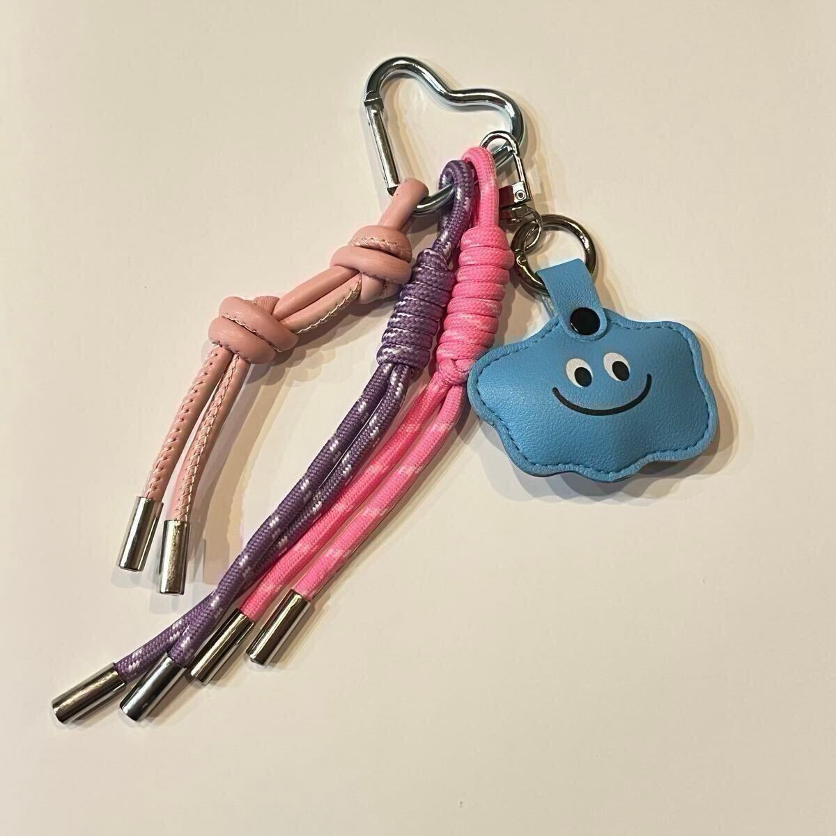キーホルダー ハンドメイド パラコード PUレザー スマイリー 水色 ピンク 紫 じゃらじゃらチャーム じゃらじゃらキーホルダー 收藏