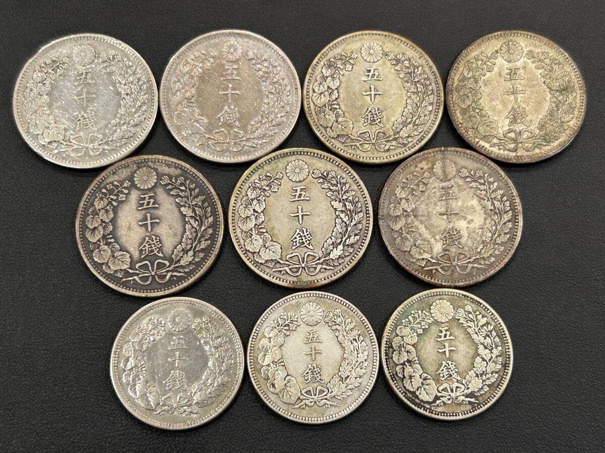 | 竜50銭銀貨 旭日50銭銀貨 計10枚 近代銭 銀銭 五十銭 1円スタート |