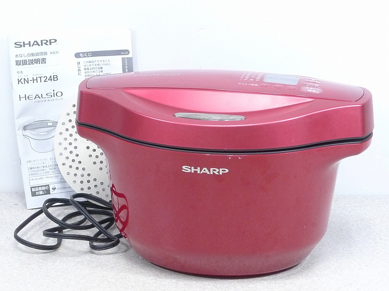 1421B05*11B▲SHARP/シャープ・水なし自動調理鍋 HEALSIO/ヘルシオホットクック・KN-HT24B・赤/レッド・説明書 蒸し板付き 收藏