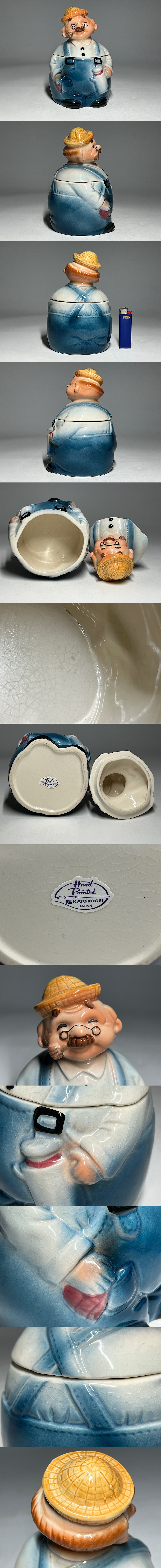 加藤工芸 陶器 おじいさん人形置物 小物入 キャンディーポット ◆商品詳細 寸法(約):17.5x11.2x11(高×幅×奥行cm) ※寸法に若干の誤差が生じる場合もございます。 汚れ、貫入がありますので、 ご承知の上入札お願いします。 状態等画像にてご確認の上ご入札よろしくお願いいたします。 ◆発送先等のご連絡とお支払いについて ※発送先等のご連絡 落札時から48時間以内にお願い致します。 ※お支払 かんたん決済の期限内にお願い致します。 複数点落札時にまとめて取引の場合(72時間内)に、 まとめて取引の取引手順(落札者方の操作)を参考にお願い致します。 梱包したサイズを測って、地方によって送料を決めますので、よろしくお願いします。 ◆掲載画像について ※画像は現物を撮影しておりますが、照度、遮光、モニターによっては実物と 色目が異なって見えることがありますのでご注意ください。掲載画像では確認 できない傷や汚れがある可能性もございます、あくまで 中古品であるということをご承知の上、御入札をお願い致します。 ◆補償について 商品到着後はすぐに状態の確認をお願い致します。 商品の破損等がございまし たら、箱や梱包材など全てそのままの状態で保存し、お早めにご連絡ください。 (到着日から一週間以上経過、梱包材の廃棄済み等の場合、保証は致しかねます のでご注意ください。) ◆返品について 思っていたイメージと違う、などのお客様主観による返品はお受けできません ので、予めご了承ください。ノークレーム、ノーリターンでお願いします。届 いた商品が商品説明と著しく異なる場合(寸法、キズ記載ミスなど)のみ承り ます。早めにご連絡ください。 ◆注意事項 当方の希望価格と隔たりがある場合は、終了前にやむなく取下げさせて頂く場 合がございます。 ※商品ご落札翌日から4日間以内にご連絡が取れない場合は、入札取消の処置を 取らさせていただく場合がございます。 ※評価の悪い方は取り消す場合がございます。 ※原則として当方の不備以外のキャンセル・返品・返金は受け付けておりません。 以上の点を予めご了承頂いた上で、入札・落札お願い致します。 ◆発送方法 ▼ゆうパック(補償あり/追跡あり) 梱包後のサイズ:~約60cm ※送料全国一律880円 (但し北海道、沖縄、離島は+500円いただきます。) 発送元は静岡県となります。 ( 商品の組み合わせによっては同梱をお断りさせていただく場合があります。) ※大型商品について 郵便局の規定を超える商品の場合は、佐川急便またはヤマトでの発送となります。 |