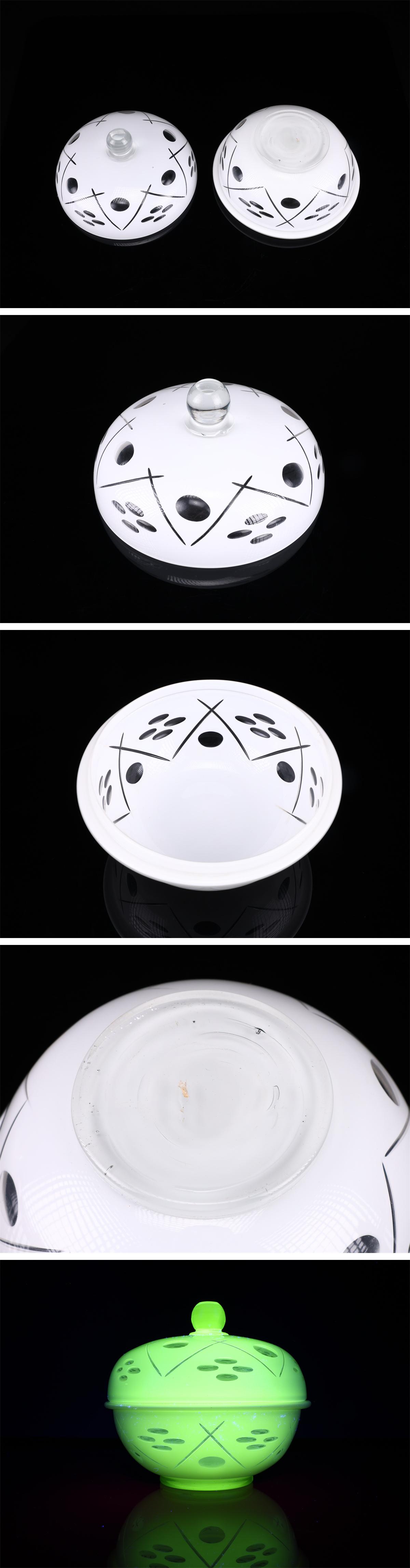 【吉】PD329 昭和レトロ 【ウランガラス】 白被せ切子 蓋物 高18㎝ 径20.5㎝/美品! 收藏