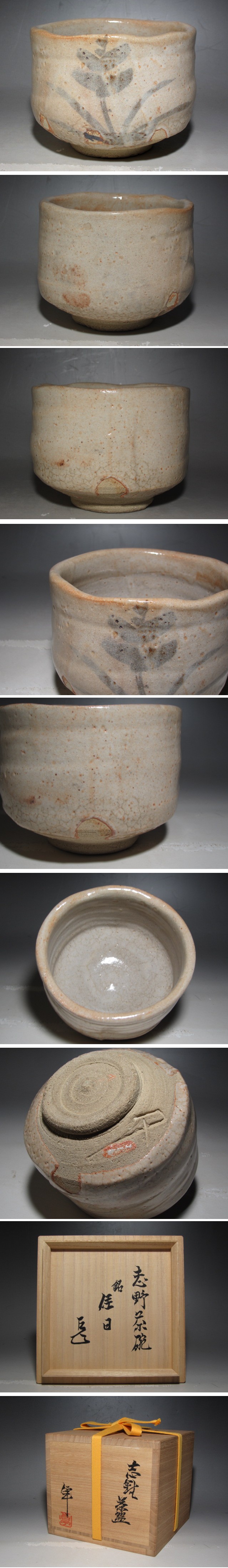 人間国宝 加藤卓男作の志野茶碗「佳日」です。 大変味わい深い景色です。 風格のある見事な出来栄えの逸品です。 サイズ 直径12.7cm/高さ10cm(多少の誤差はお許しください) 状態 一見して疵やヒビ・直しは見られません。 骨董品という事をご勘案頂き、時代経過のスレや、小さな傷がある場合があるかもしれませんのでご承知置きください。 | |||