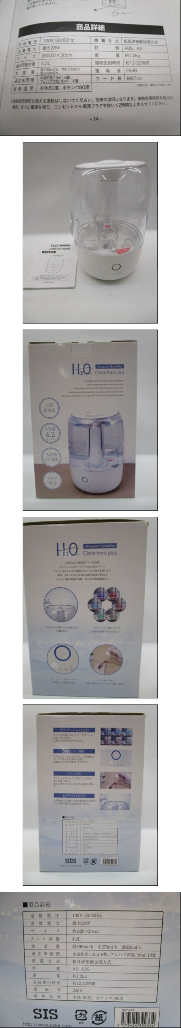 ★手0418 H2O クリアタンクプラス Clear tank plus 上部給水式 加湿器 超音波振動加湿方式 32506032 收藏