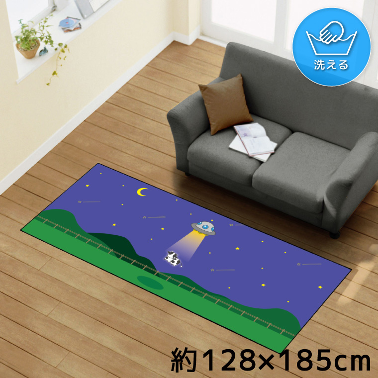 ラグ 洗える 北欧 約79×175cm カーペット イラスト アクセントラグ 転写 TEN152-C 牛 UFO 連れ去られる牛 マルチ 收藏