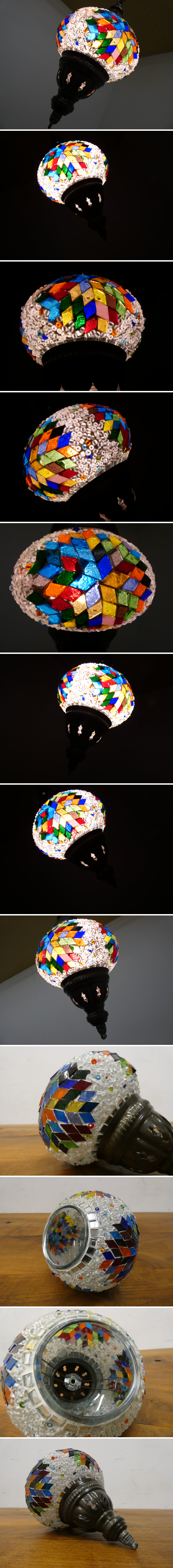 ◆RN255◆美品◆トルコランプ◆ハンドメイド◆モザイクガラス◆ペンダントライト◆シェードのみ◆照明◆直径13cm◆幾何学模様 吊り下げ照明 收藏