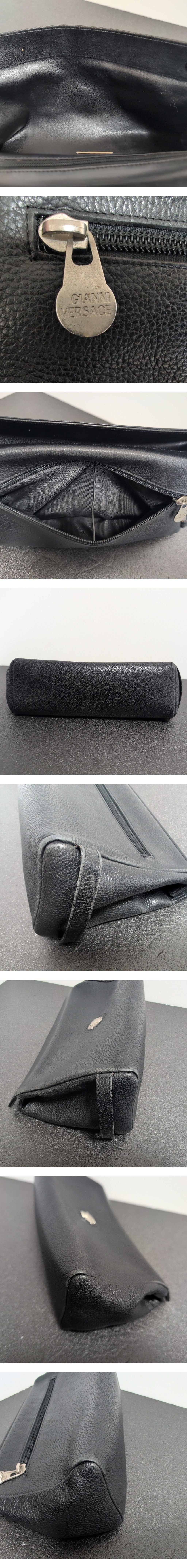 ジャン二 ヴェルサーチ ハンドバッグ クラッチバッグ 手持ち バッグ 黒 ブラック 本革 牛革 メデューサ GIANNI VERSACE v119 收藏