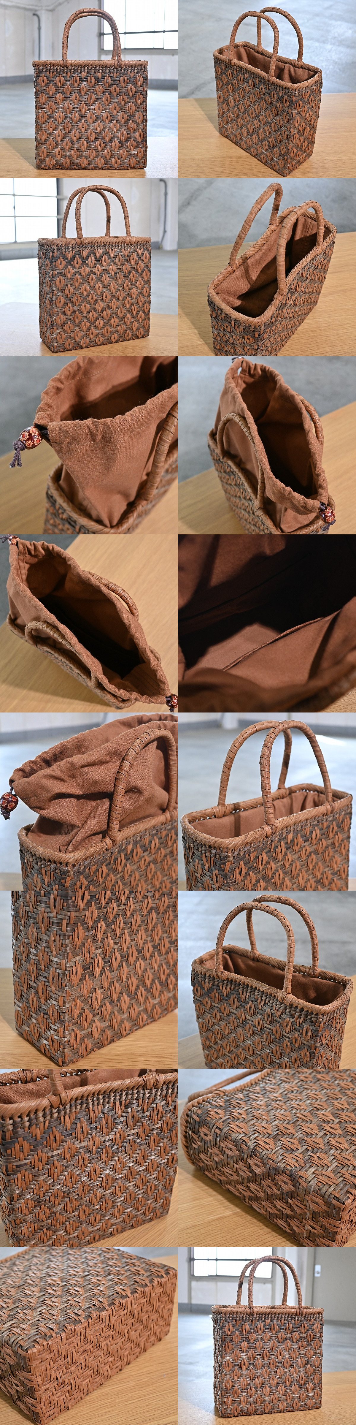 新品未使用 志穂里 山葡萄かごバッグ 10万 D 網代編み 柿渋染め ハンドメイド 内袋 巾着 レディース 手提げ 女性 籠 やまぶどう_三越伊勢丹 收藏