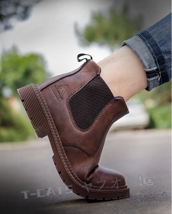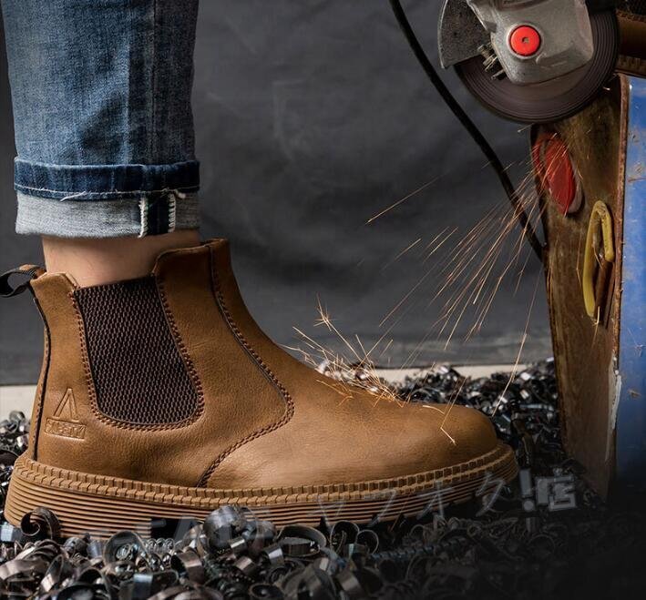 新品安全靴 ハイカット メンズ 防水安全靴 作業靴スニーカー 溶接用ブーツ つま先保護 おしゃれ 耐滑 チェルシーブーツ ブラック 25.5cm 收藏