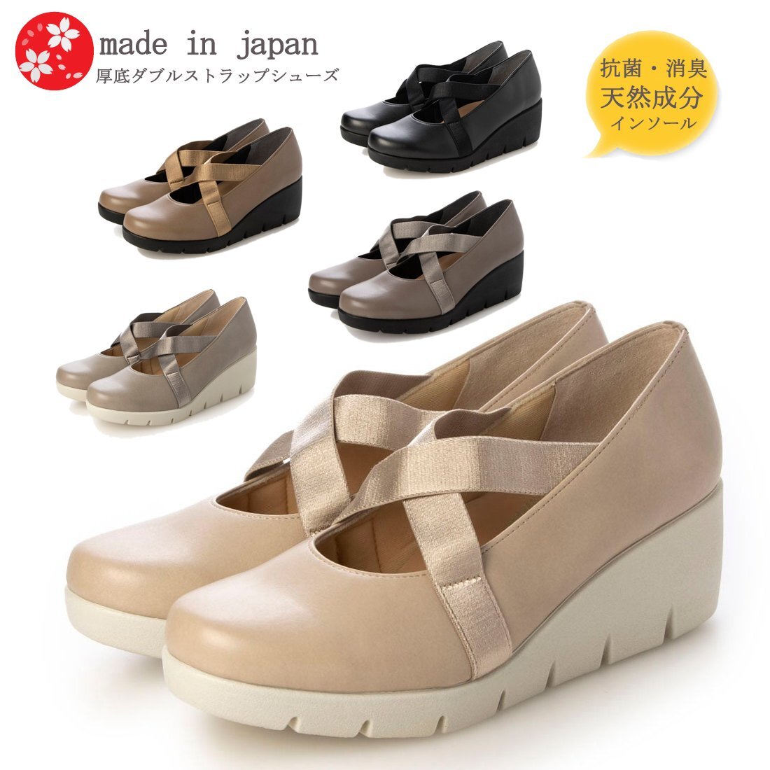 37lk ファーストコンタクト パンプス レディース 日本製 クロスベルト 痛くない 母の日 ウェッジ 走れる 厚底 カジュアル 結婚式 低反発 收藏
