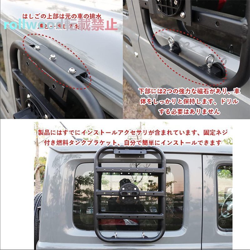 新型スズキジムニー JB64 JB74 サイドウィンドウラダー + 燃料タンク ウォータータンク 燃料 灯油 リヤラダー ロック付き (6Lタンク, 黒) 收藏