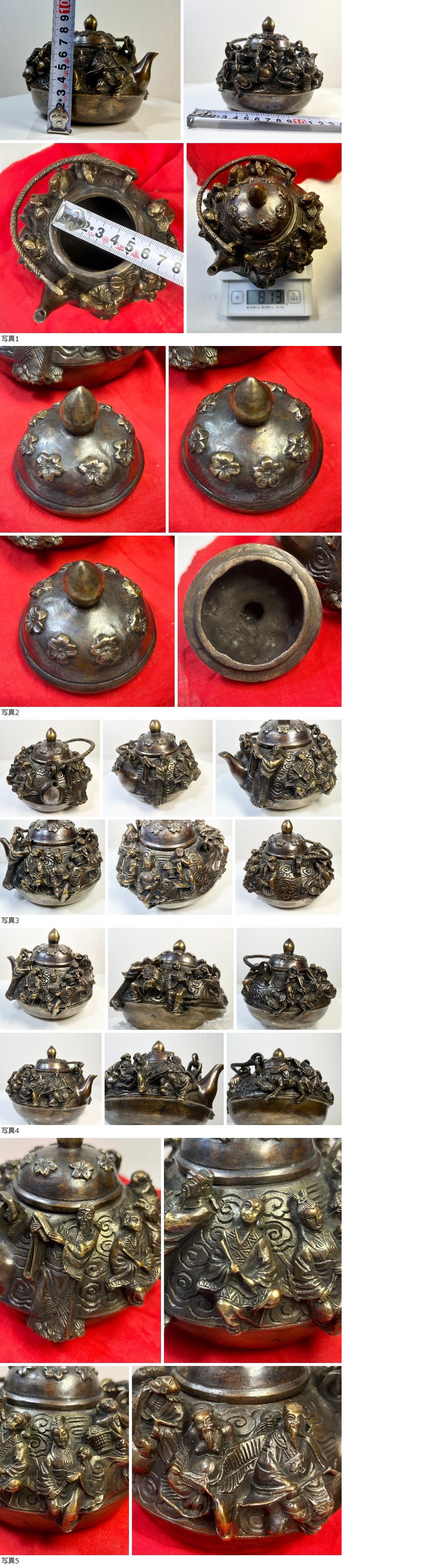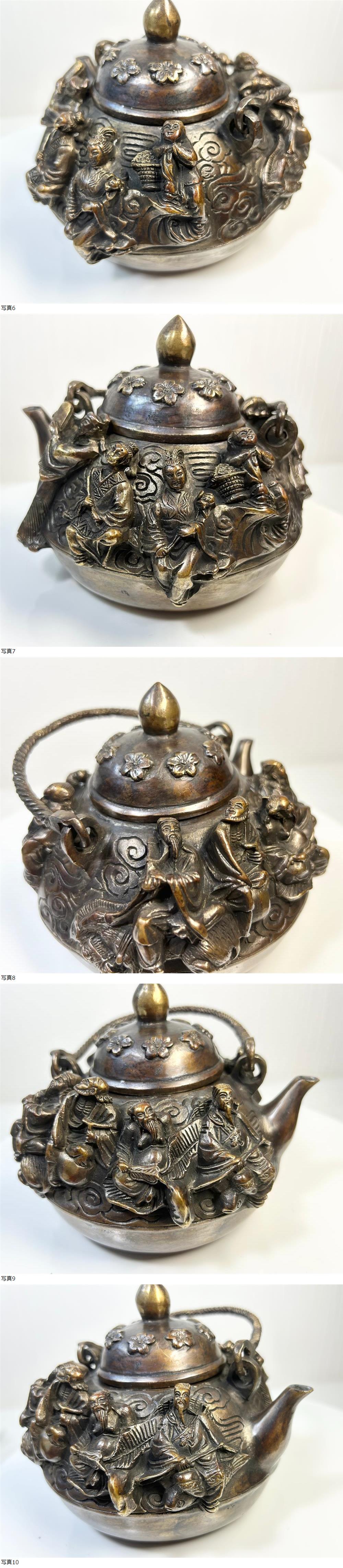 ☆★☆古美術品 中国美術品 急須 煎茶道具 銅製 大明宣徳年製 八仙人 彫刻 賢人 老師 老子 ☆★☆ 收藏
