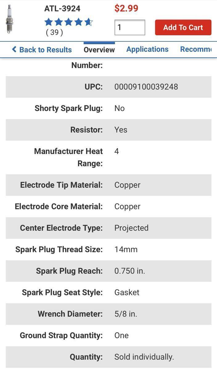 シボレー スパークプラグ SBC アルミヘッド用 ガスケットタイプ Autolite 3924 8本セット AFR edelbrock 收藏