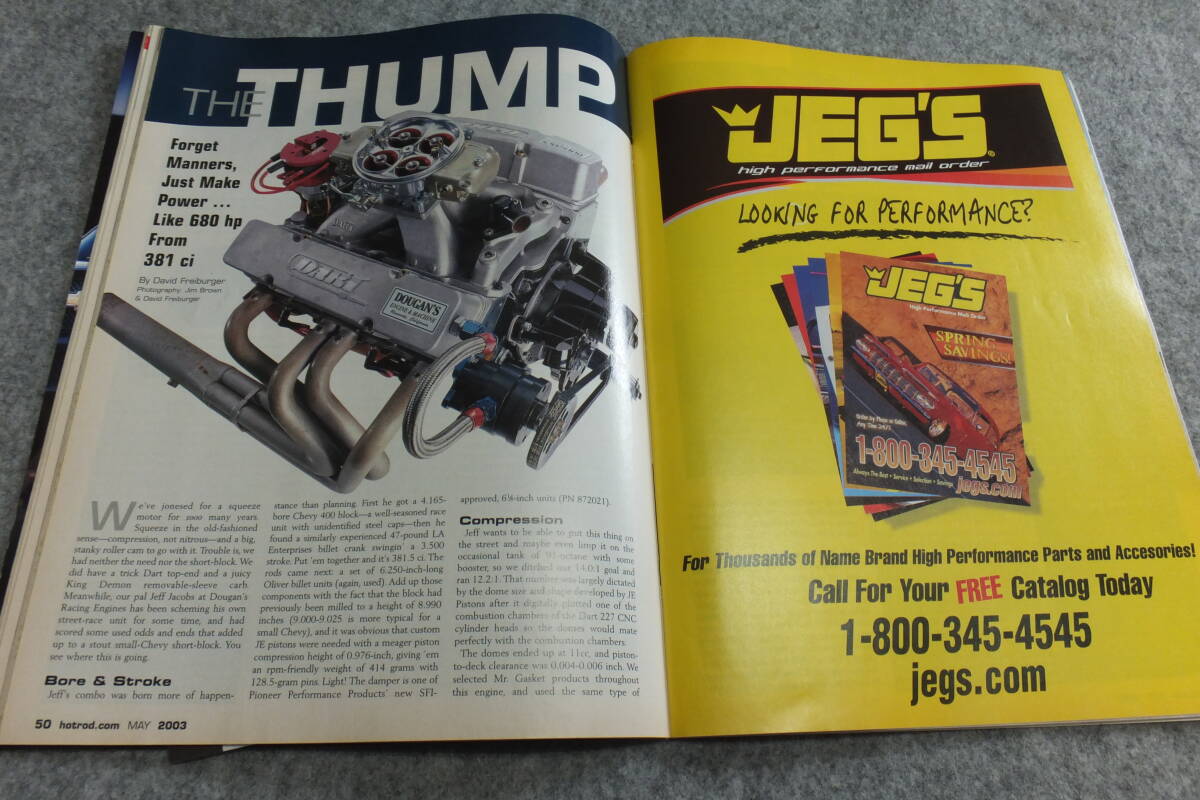 洋書 ホットロッドマガジン HOT ROD MAGAGINE 2003年5月号 英語アメ車 ドラッグレース サスペンション特集 中古品です。ノークレーム、ノーリターン、アメリカからの輸入品にご理解のある方。発送まで少々お時間をいただく場合がございます。