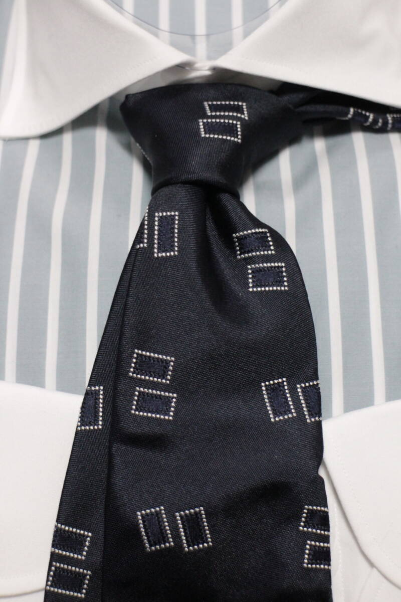 ニッキー*アローズ別注新品ネクタイ超艶ネイビー*シルバージャガード小紋ツインスクウェアフルハンドメイド極上シルク 收藏