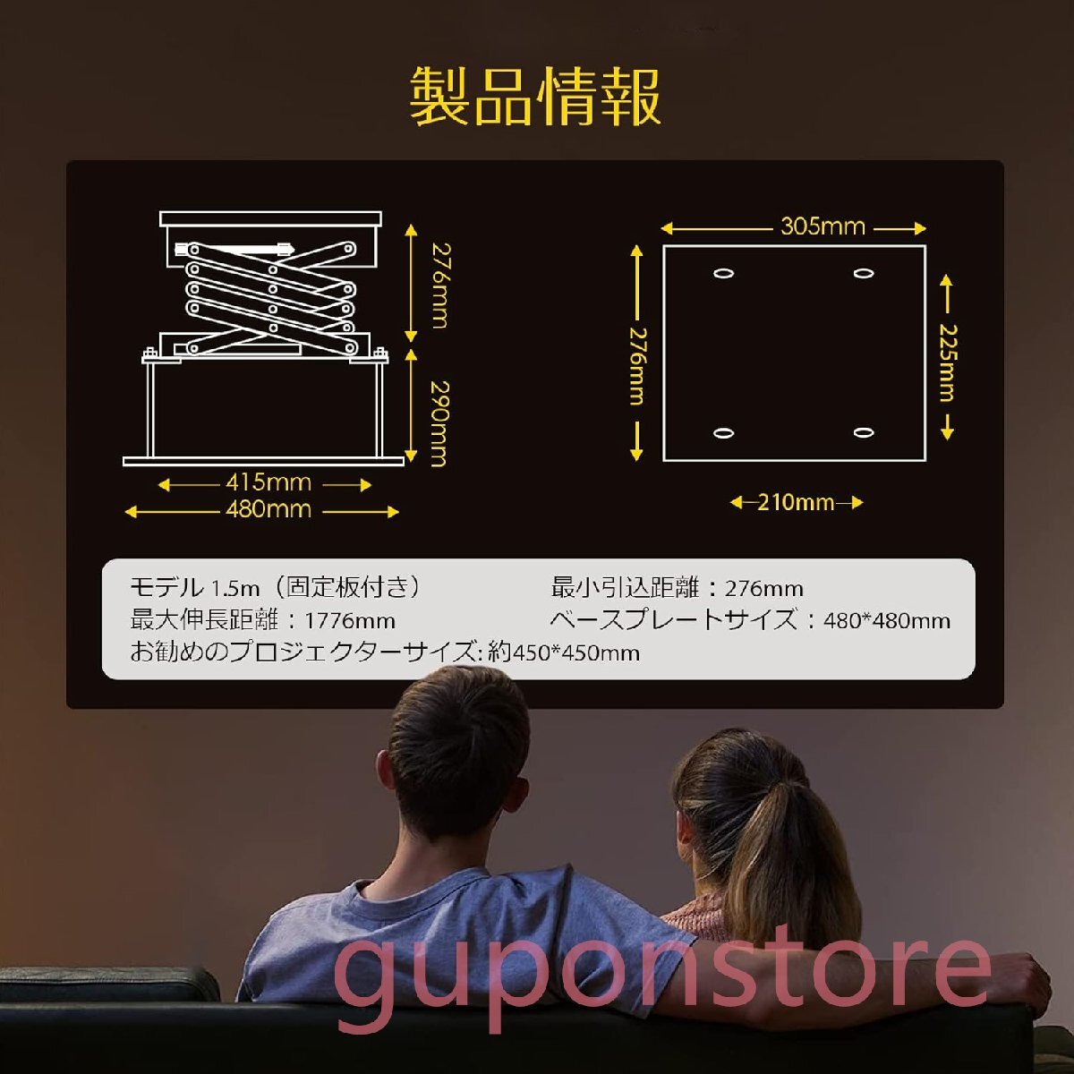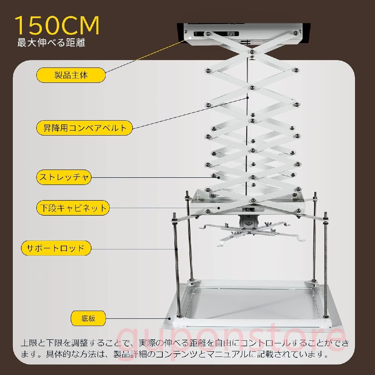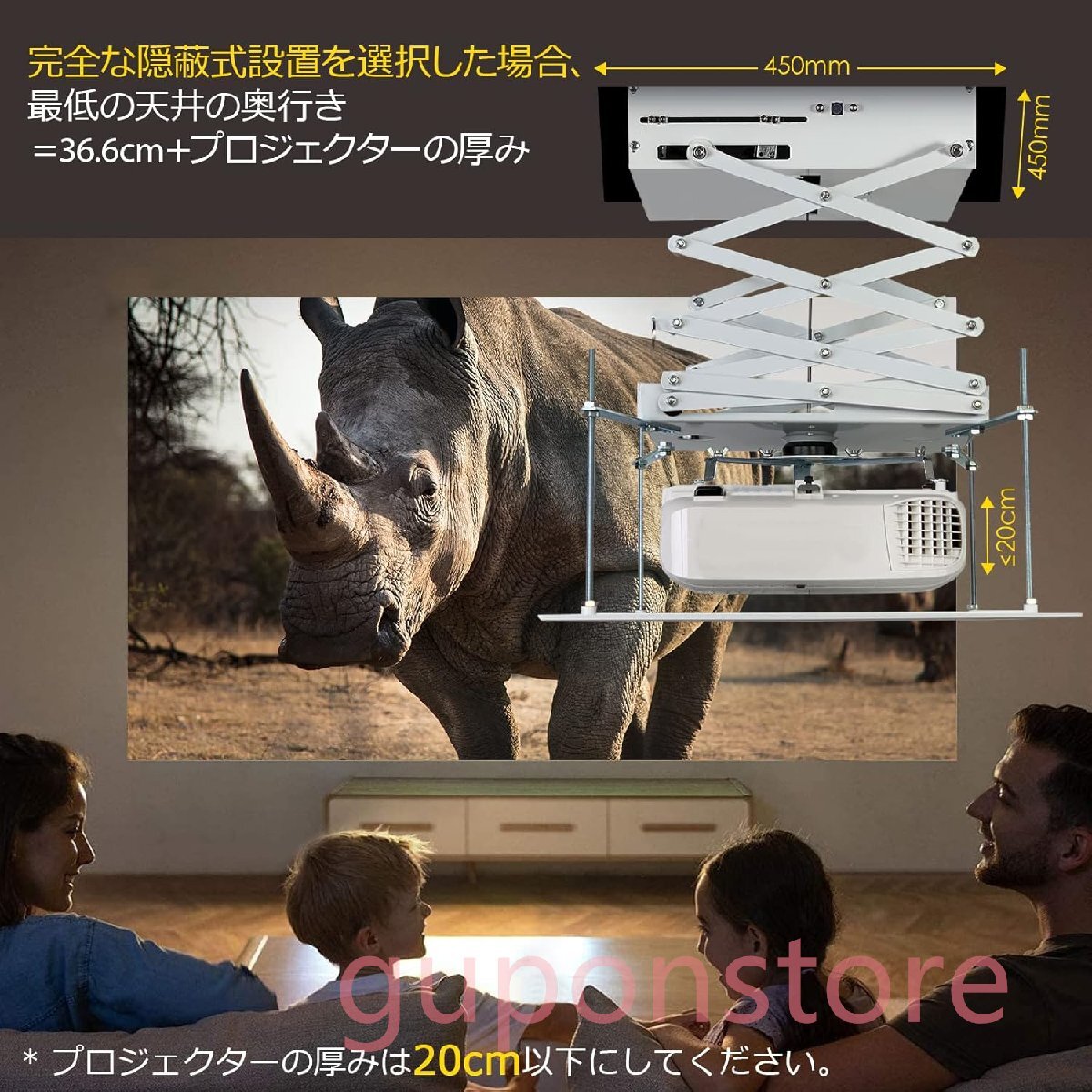 プロジェクターハンガー電動 天井吊り下げ業務用1m・1.5m・2m ご家庭、学校、映画館、会議室、研修会に (2M) 收藏