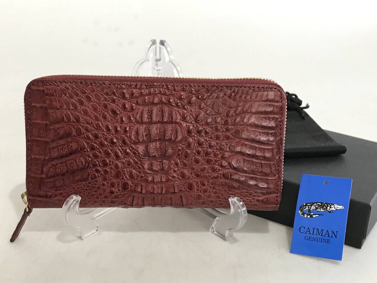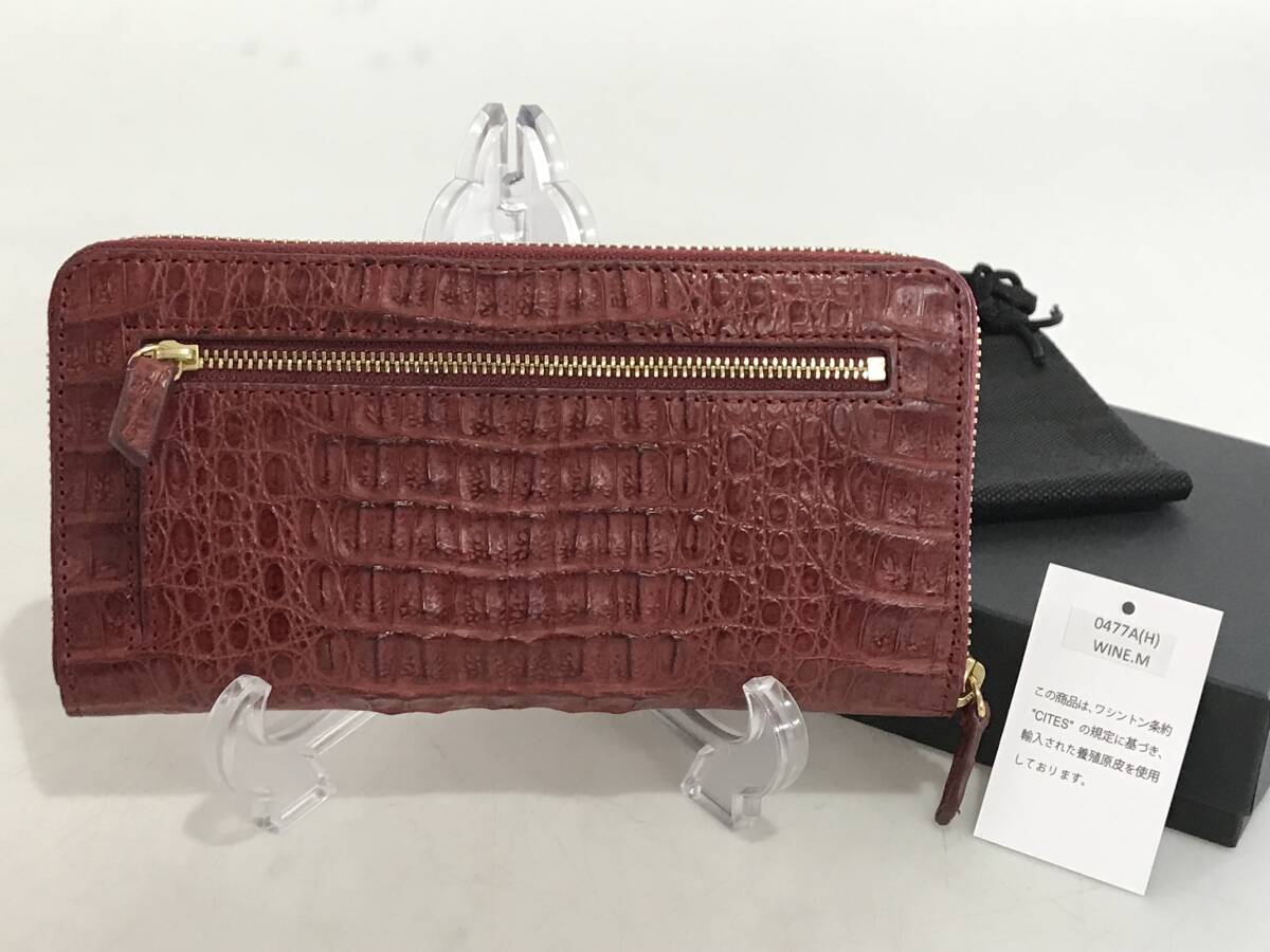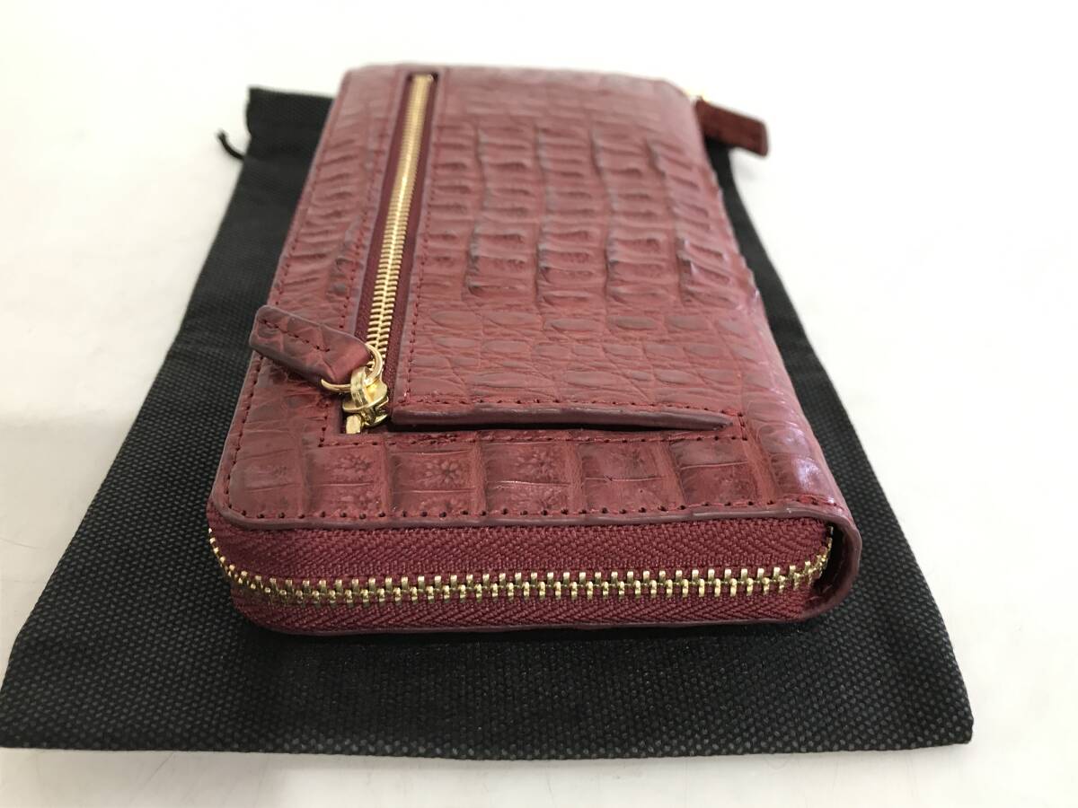 HG7783 カイマン ホーン 長財布 ラウンドファスナー ワニ革 レザー 一枚革 ワイン 小銭入れあり 専用箱付き 未使用品 收藏