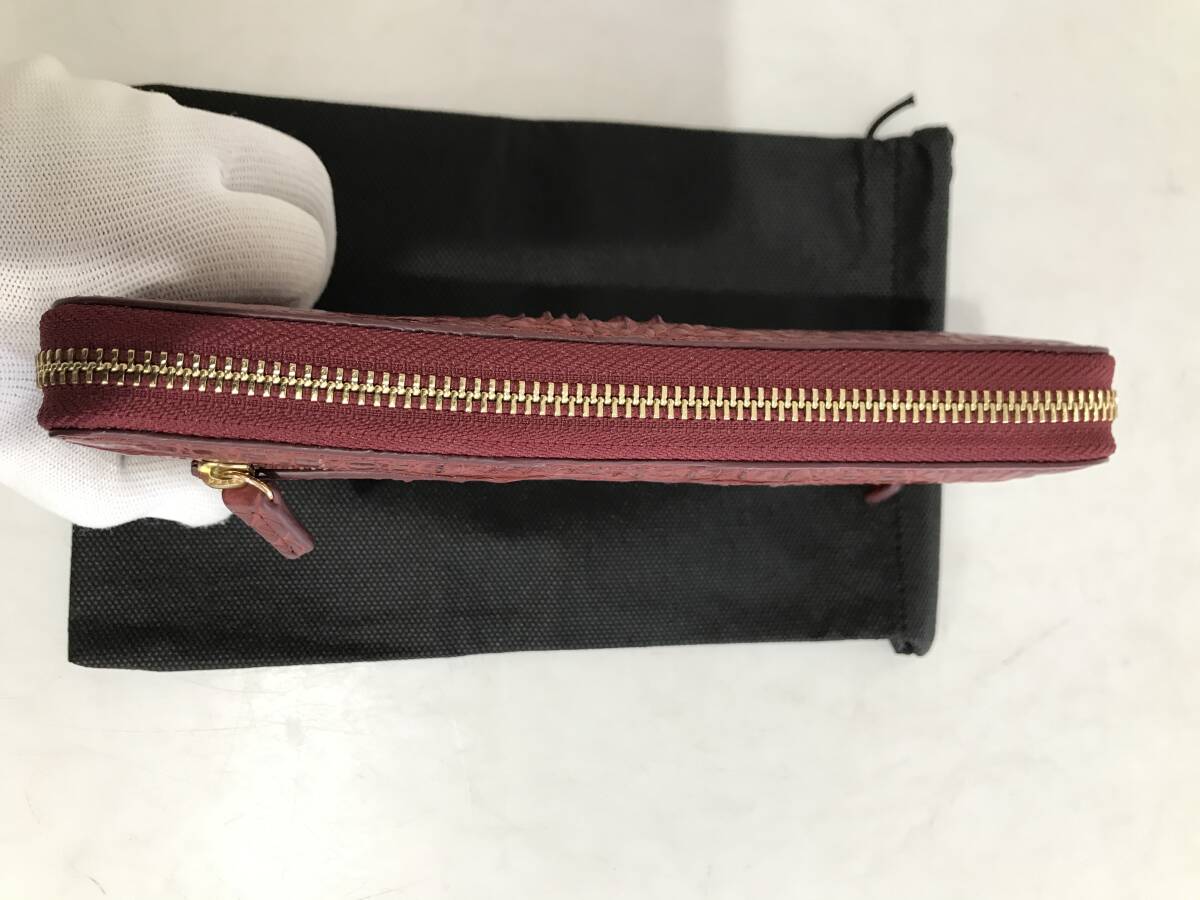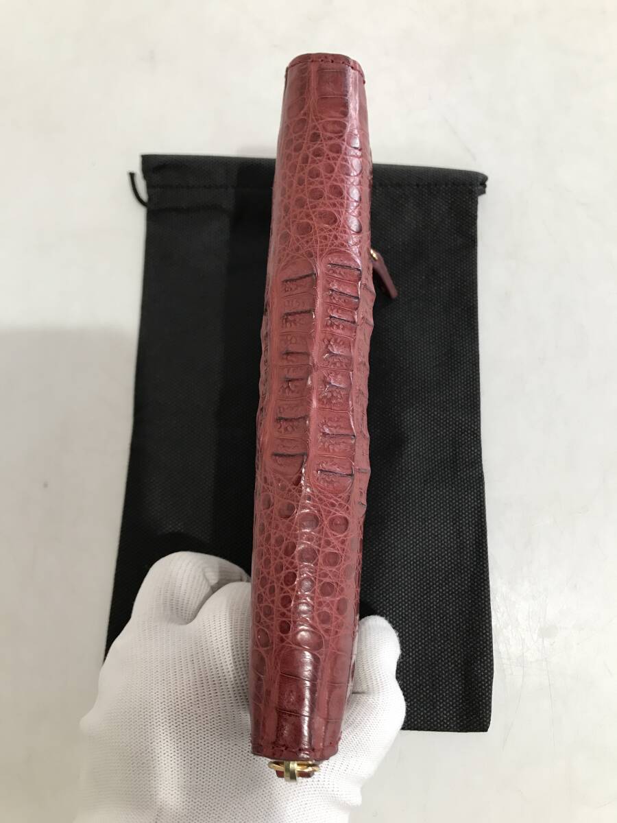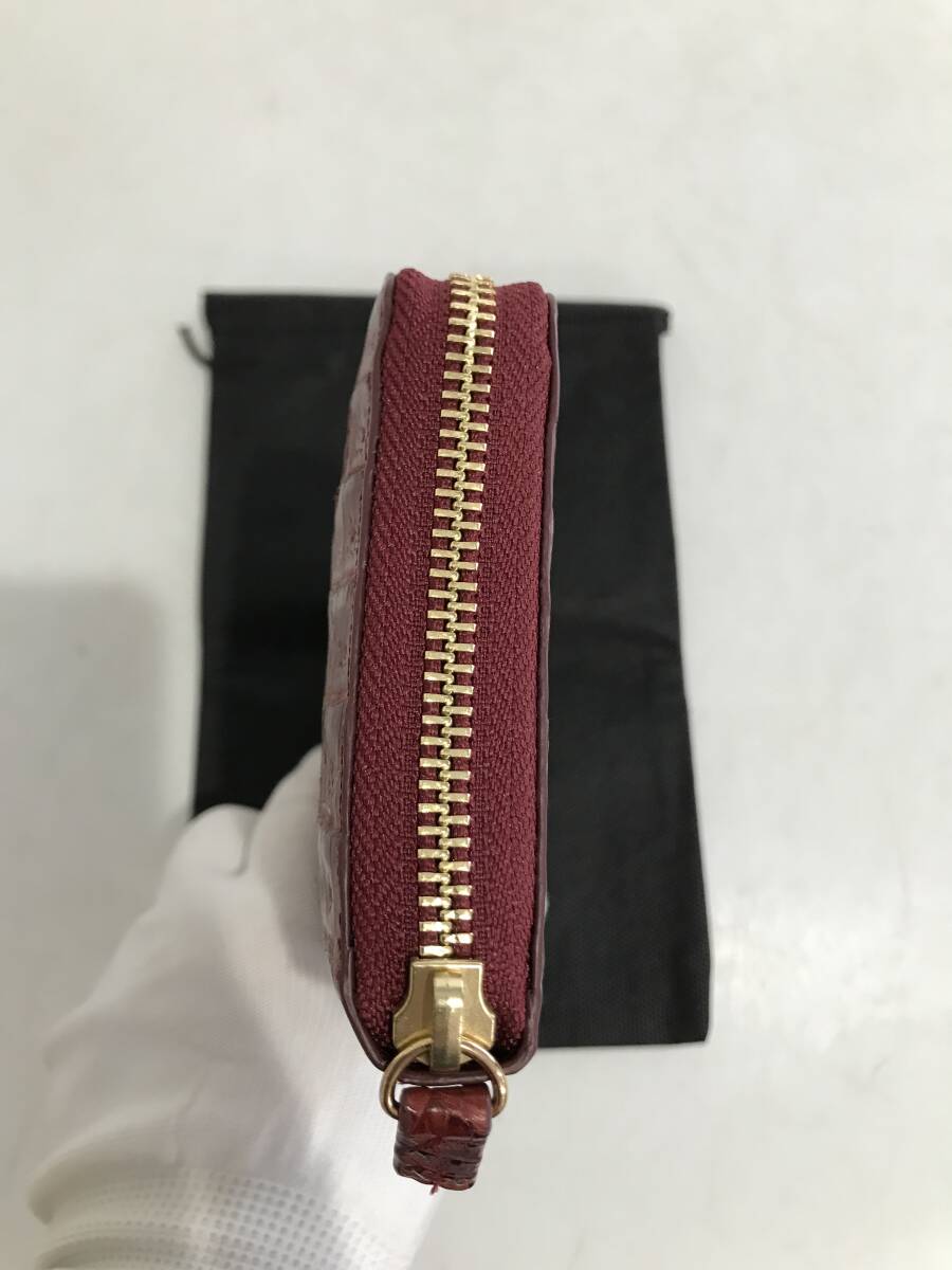 HG7783 カイマン ホーン 長財布 ラウンドファスナー ワニ革 レザー 一枚革 ワイン 小銭入れあり 専用箱付き 未使用品 收藏