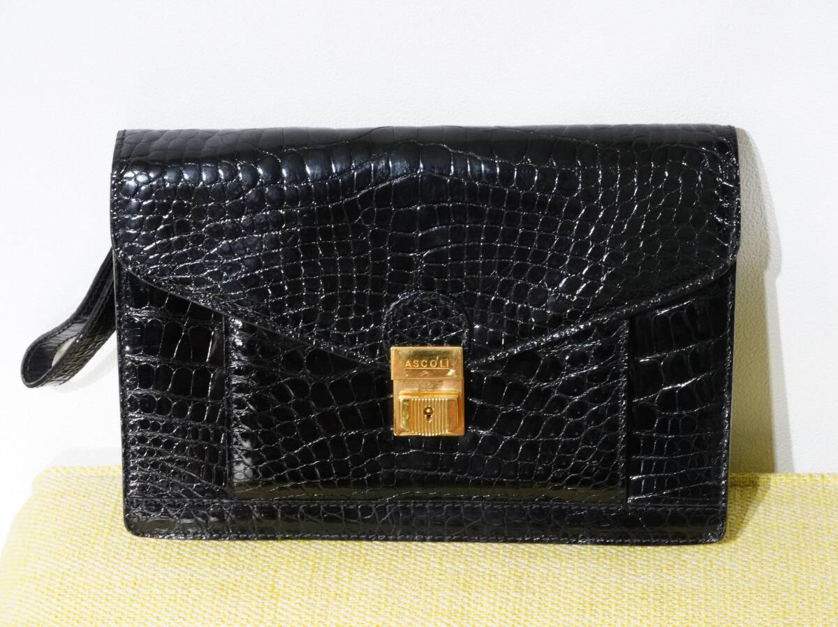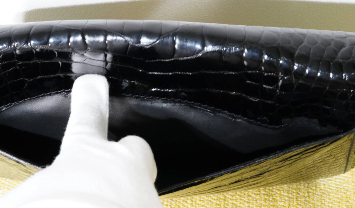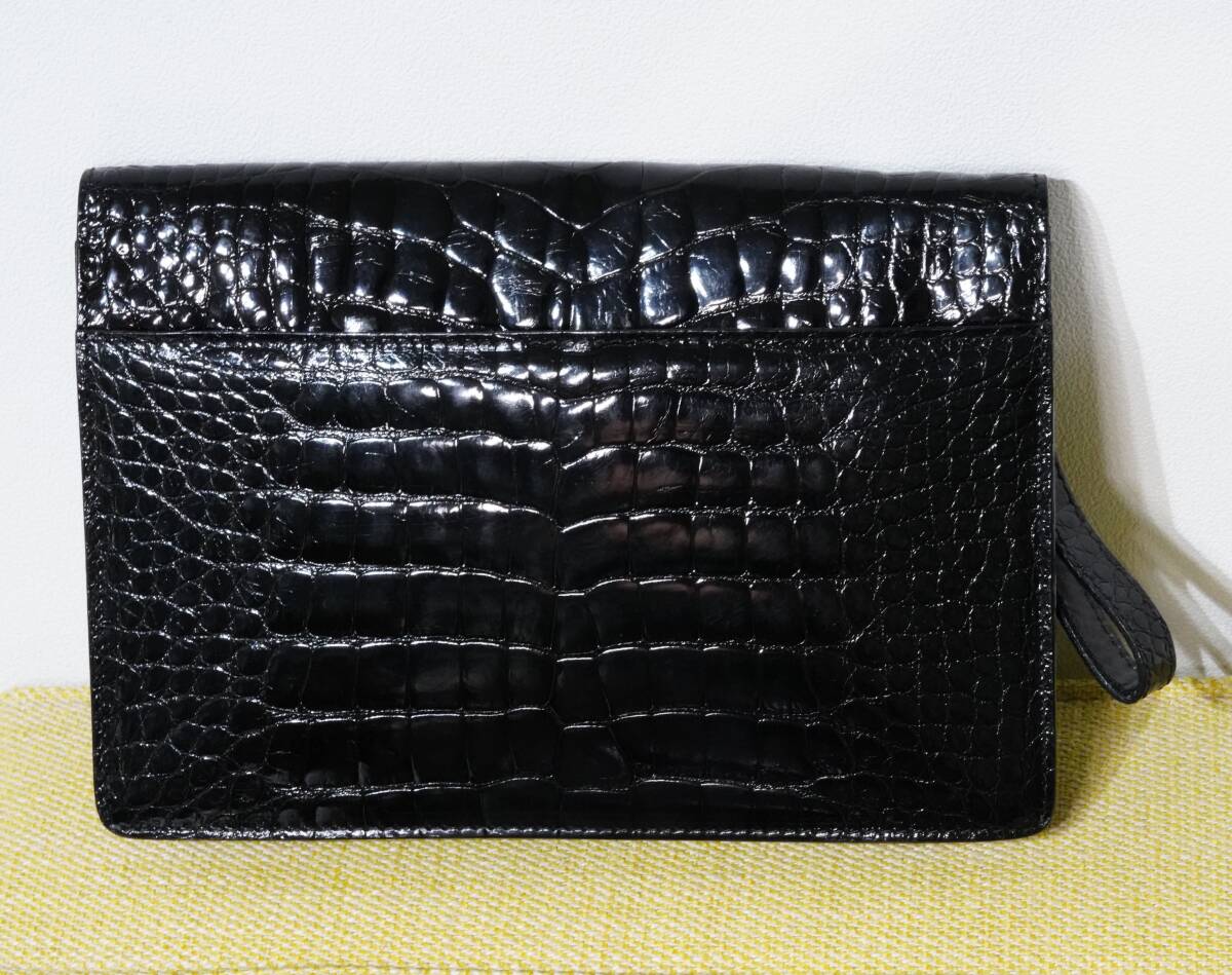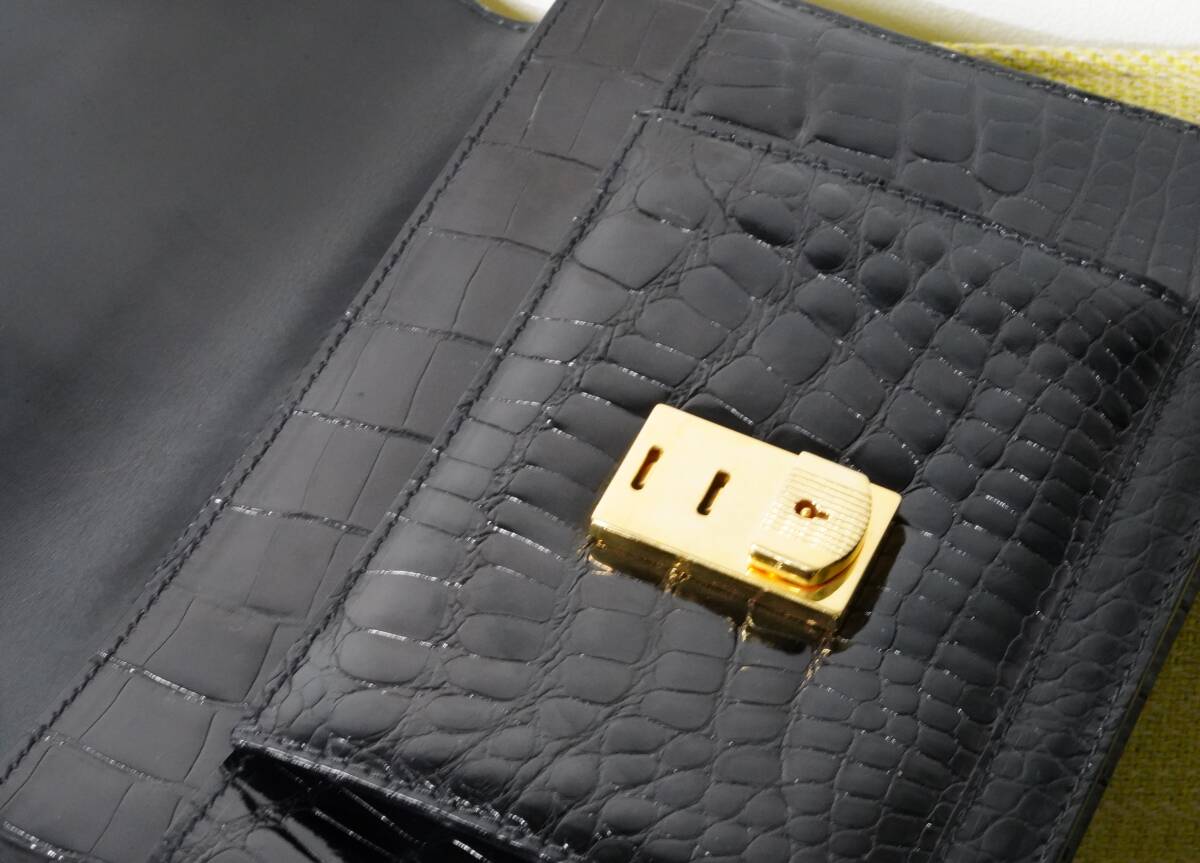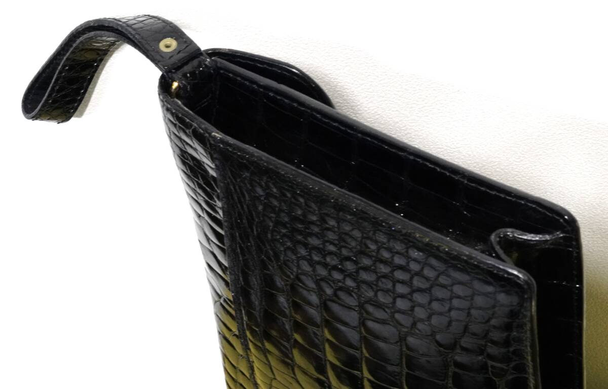 ゴールド金具 ブラック クロコダイル メンズ バッグ 本クロコダイル革 ワニ 鰐 黒 收藏