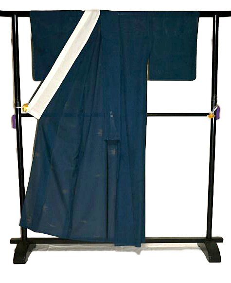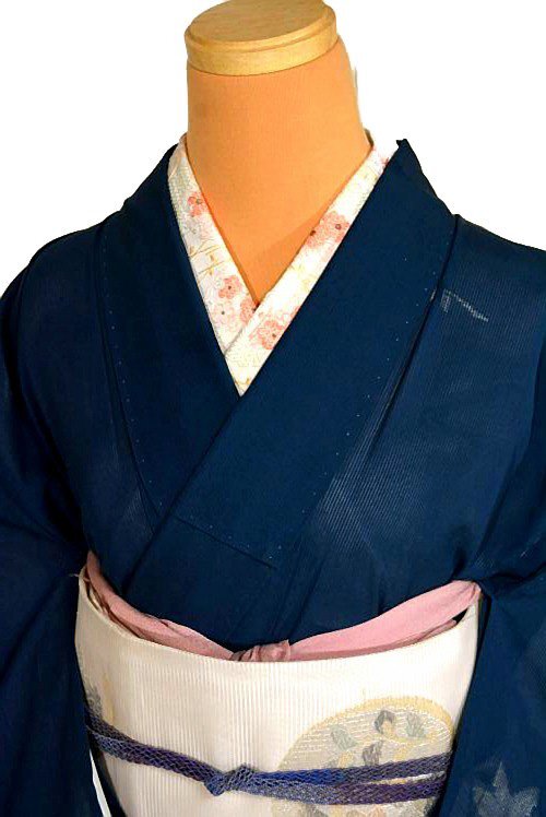 夏物 色無地 中古 着物 送料無料 身丈157cm 裄丈62cm 最高級 美品 絽 藍色 楓地紋 正絹 カジュアル T3581 收藏