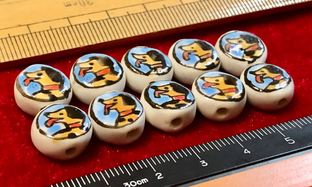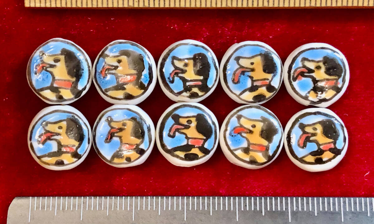 Φ 粉彩ビーズ Φ 20玉で 厚さ6㎜×Φ12㎜釦玉 手作 白磁に粉彩のワンちゃん紋様 手芸 ネックレス ブレス ペンダント インテリア 收藏