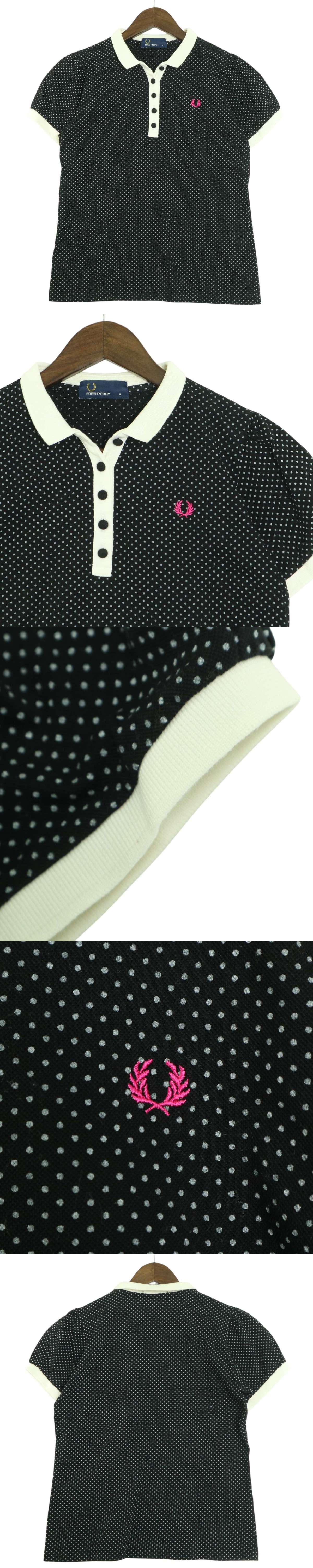 FRED PERRY フレッドペリー 春夏 ロゴ刺繍★ クレリック風 半袖 鹿の子 ドット 総柄 ポロシャツ Sz.M レディース 黒 日本製 E5G03212_5#S 收藏