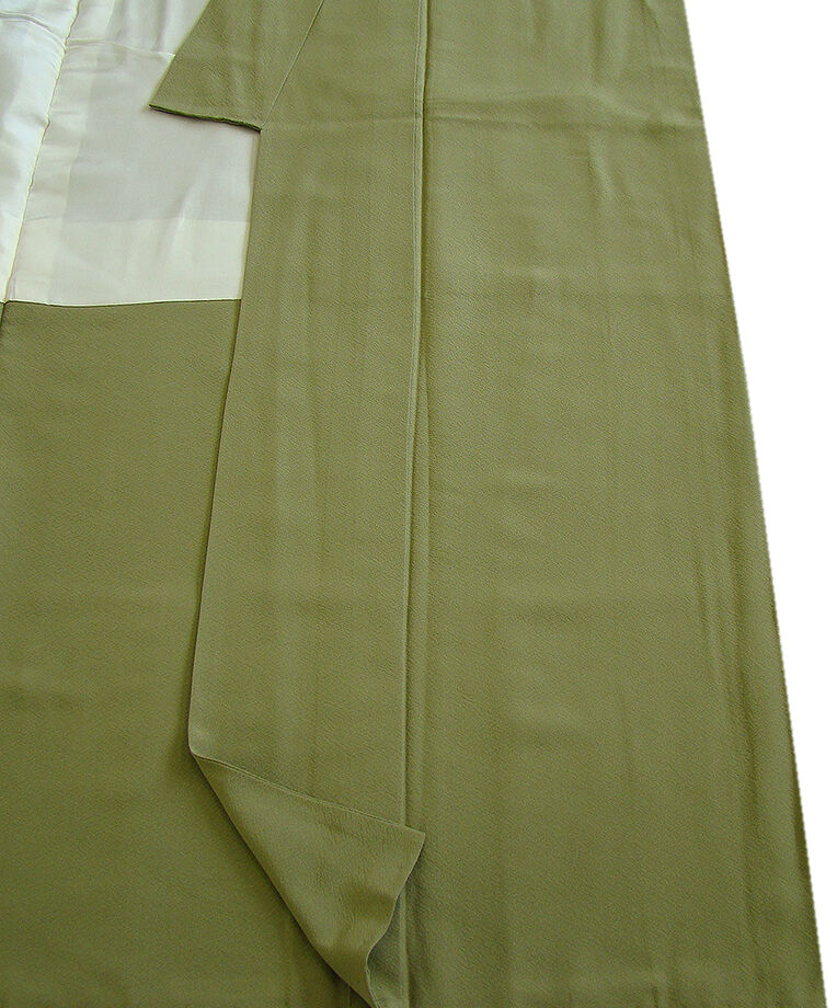 | 商品説明 | こちらのお品は袷ですので10月から5月までお召頂ければと思います。 とてもしなやかな生地は重厚感のあるぽってりとしたちりめん地の生地、 上品な柳茶色地の無地着尺、 八掛は共布(正絹)、背には紋1ヶ入っております。 |