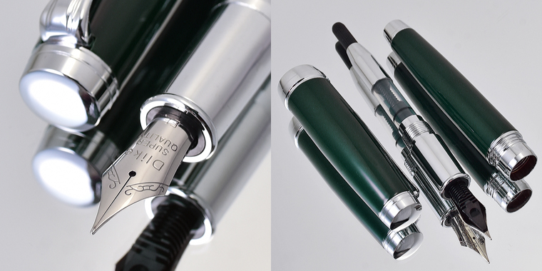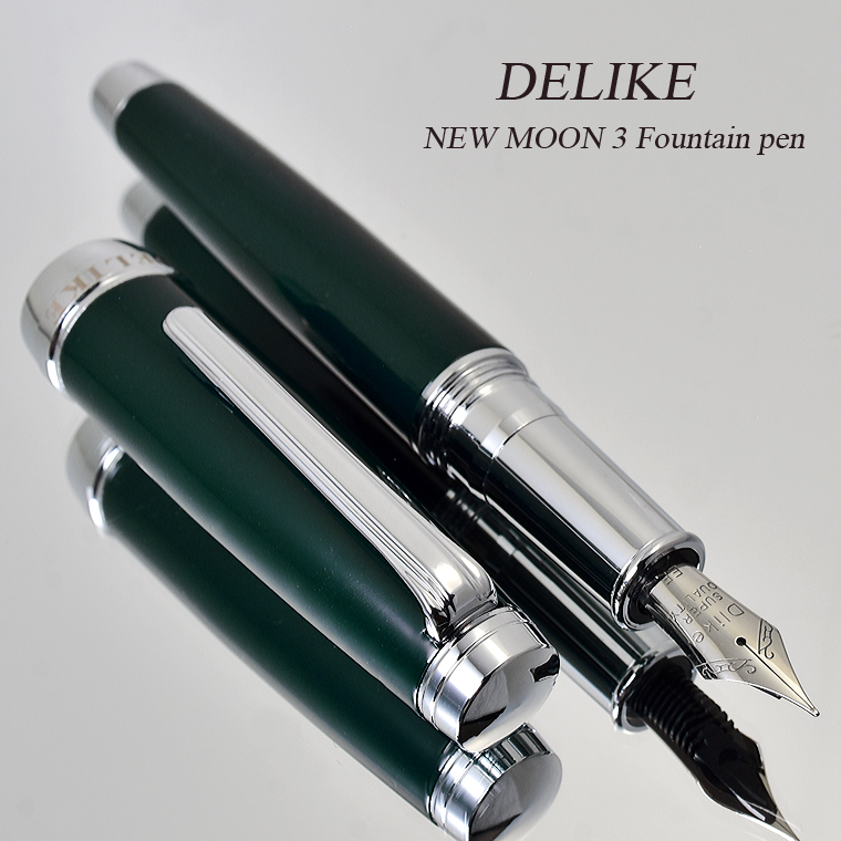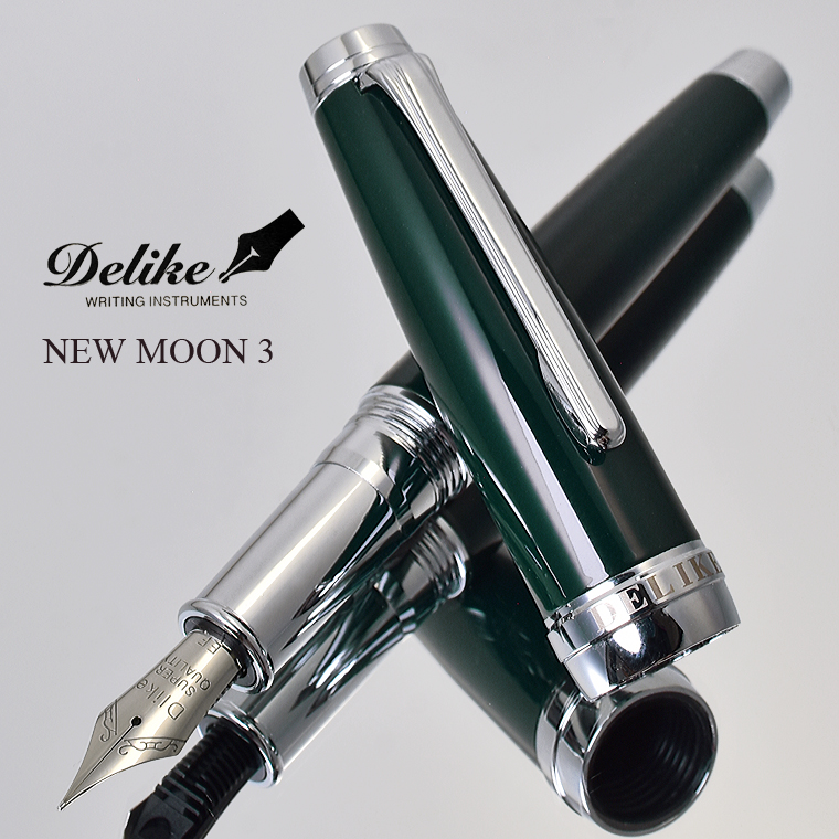 ■●【DELIKE/ディライク】ニュームーン/NEW MOON 3 万年筆 ダークグリーン 黒緑 艶やかなラッカー F(細字) 両用式 新品未使用/DL8DGR-F 收藏
