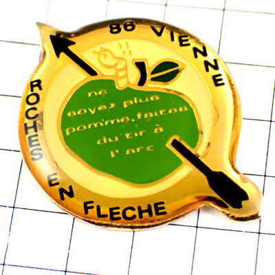 ピンバッジ・矢の刺さった青りんご林檎アーチェリー果物の虫◆フランス限定ピンズ◆レアなヴィンテージものピンバッチ 收藏