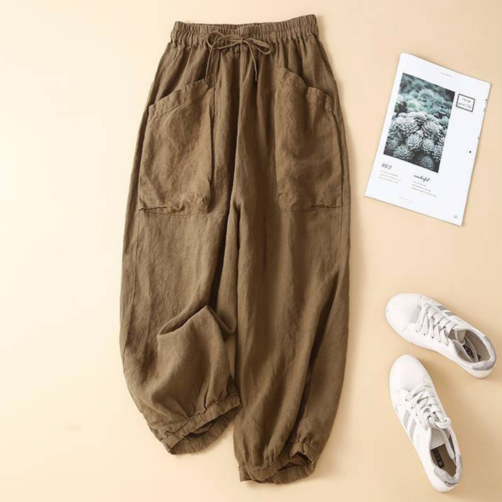 ☆ ブラウン ☆ L ☆ バルーンパンツ 麻混紡 コクーンパンツ ゆったり バルーンパンツ コクーンパンツ レディース サルエルパンツ 收藏