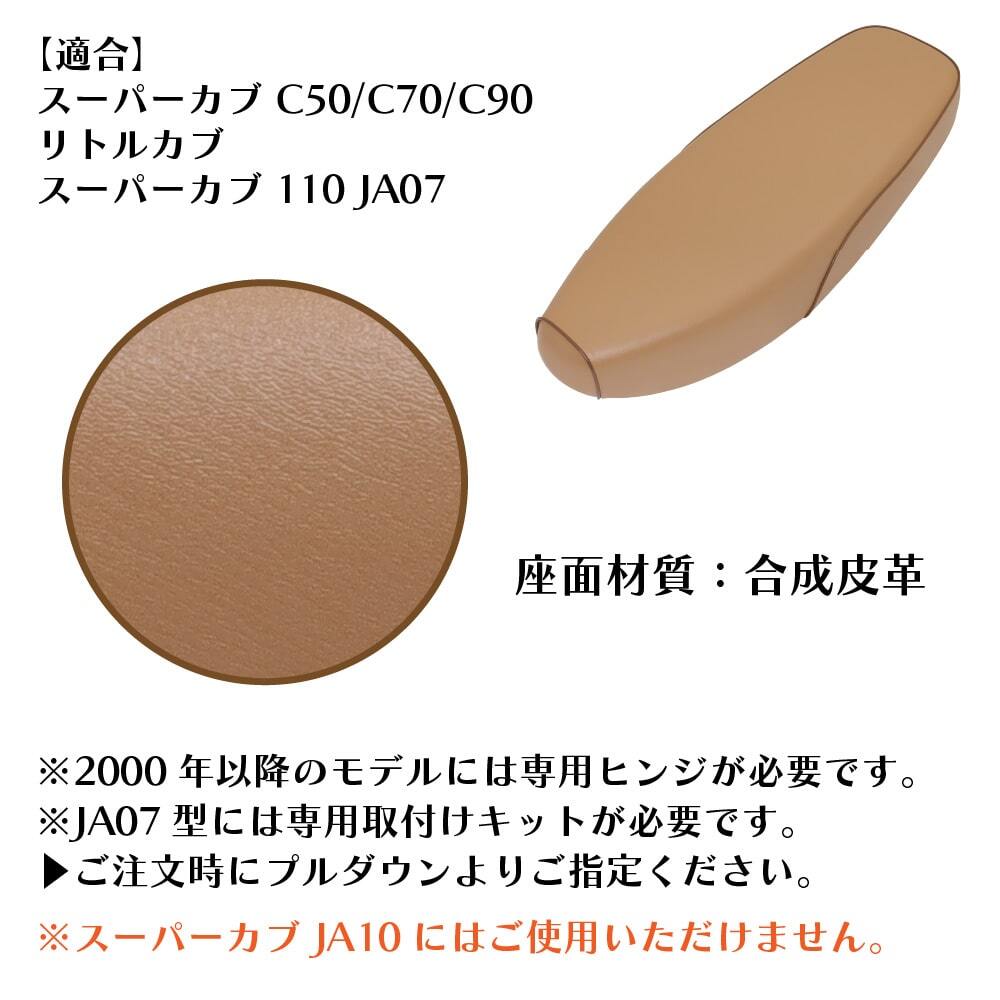 | スーパーカブ 50 /70 /90(注1) リトルカブ(注1) スーパーカブ110 JA07(注2) ※旧カブ、AA04不可。 ※こちらのダブルシートは【スーパーカブ110 JA10】にはお使い頂けません。 (注1) 2000年以降のモデルにお使いいただく場合、純正のヒンジが流用できませんので、下段プルダウンメニューよりシートヒンジを「必要(+550円)」に選択してご注文ください。JA07型の場合は取付キットにヒンジも付属していますので「不要」を選択してください。 (注2) スーパーカブ110【JA07】にお使いいただく場合、【JA07】専用のダブルシート取り付けキットが必要になりますので、上段プルダウンメニューより「JA07専用取付キット※専用ヒンジ付属(+2400円)」をご選択の上ご注文ください。 *こちらのシートは出荷前に取り付け・外観を検品済です。 |