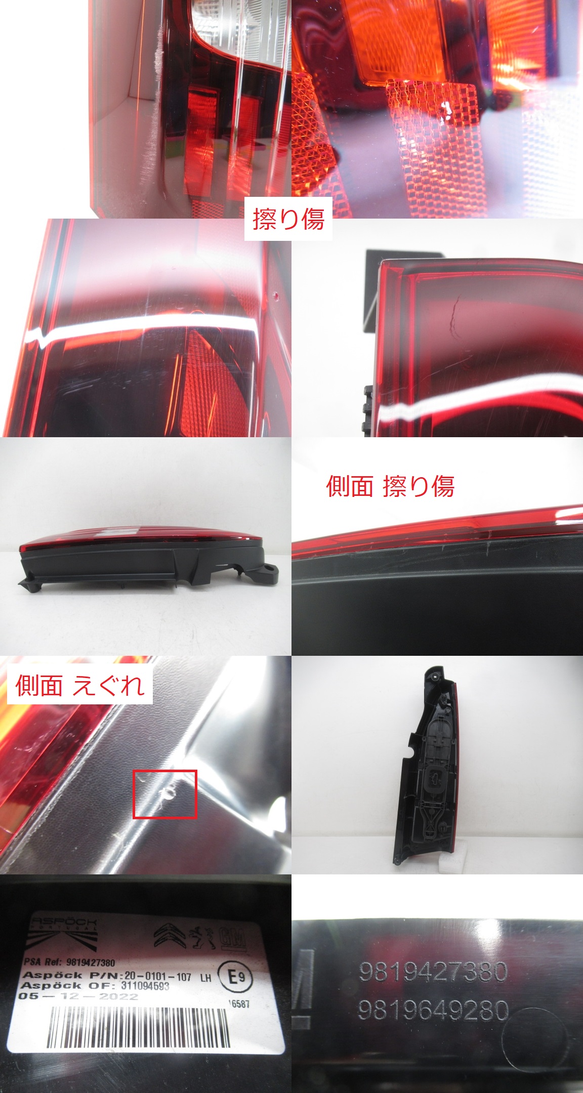 《即決あり》 プジョー リフター K9PYH01 純正 左 テールライト テールランプ 【 9819427380 】 (M009396) 收藏