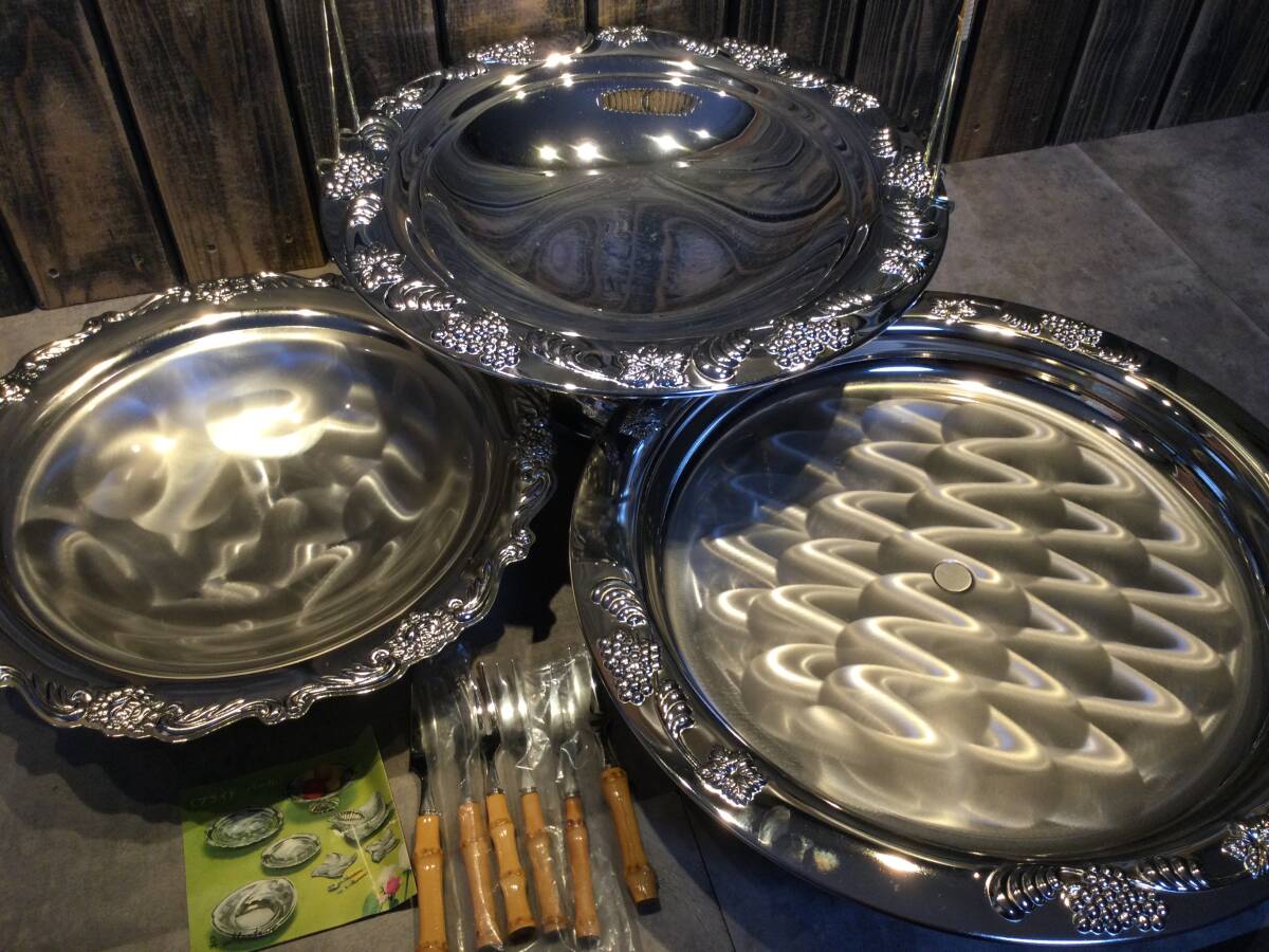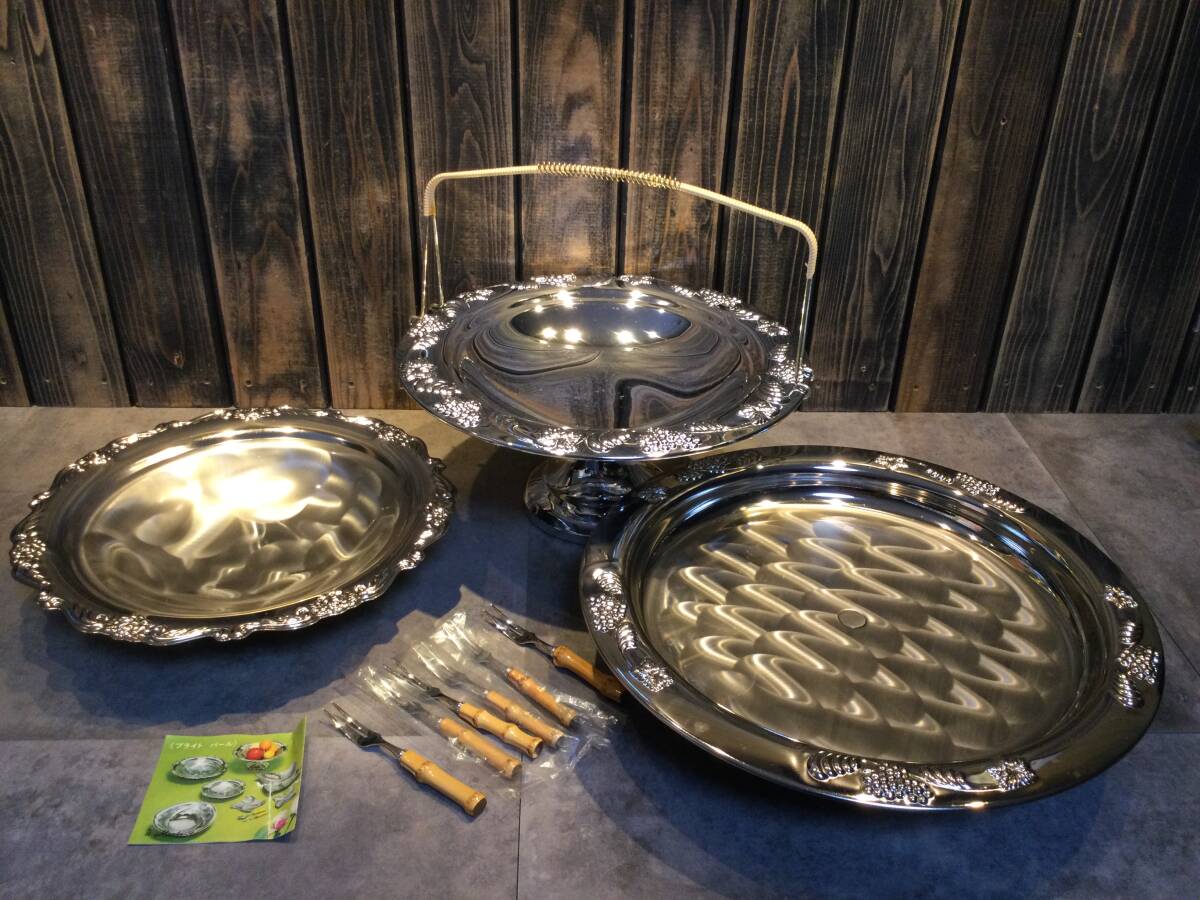 未使用・保管品 昭和レトロ マーシャン 洋食器 ブライトパール 丸型バラコンポート(台付)フォークセット 盛皿フルーツセット アンティーク 收藏