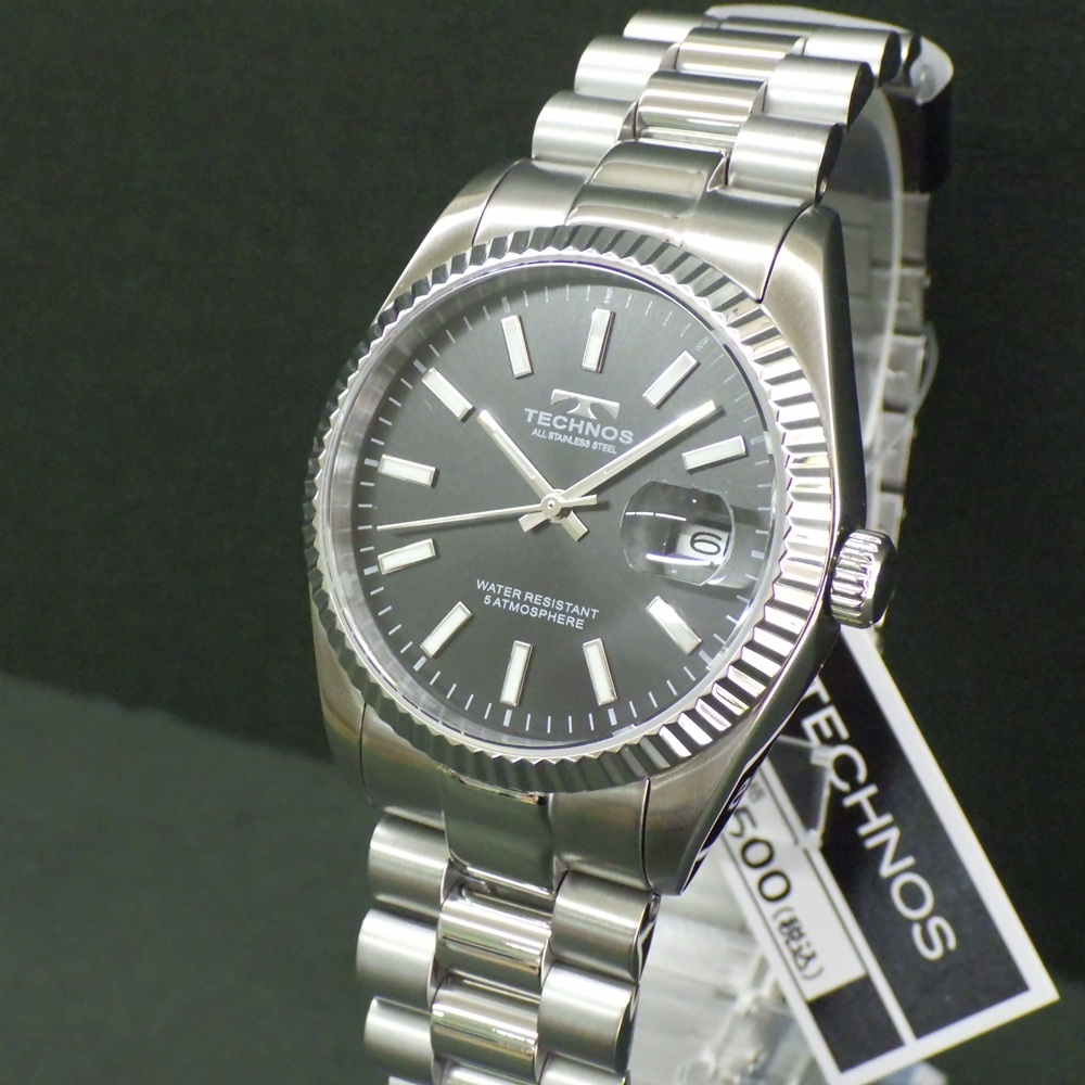 送料無料 特価 新品 TECHNOS テクノス 国内正規品 T9C25SB ブラック文字盤 ステンレス3連ブレス シルバーベルト メンズ腕時計 收藏
