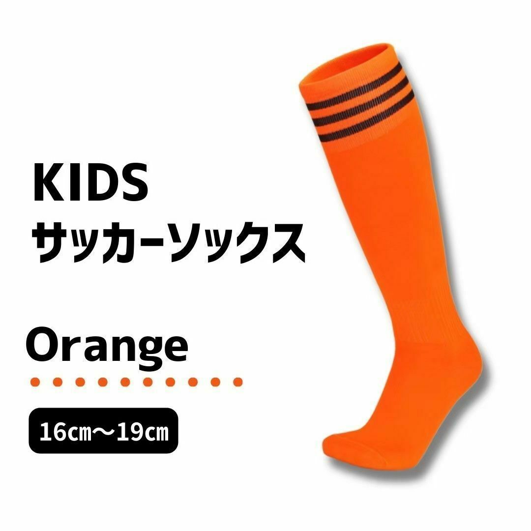 【キッズ】オレンジ×黒 3本ライン 橙 ジュニア サッカーソックス 16~19 收藏