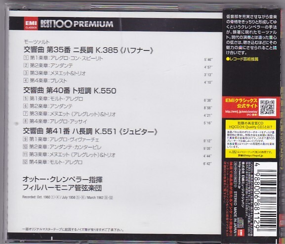 ★CD EMI モーツァルト:交響曲第35番[ハフナー].第40番.第41番[ジュピター]*オットー・クレンペラー(Otto Klemperer) HQCD仕様 收藏
