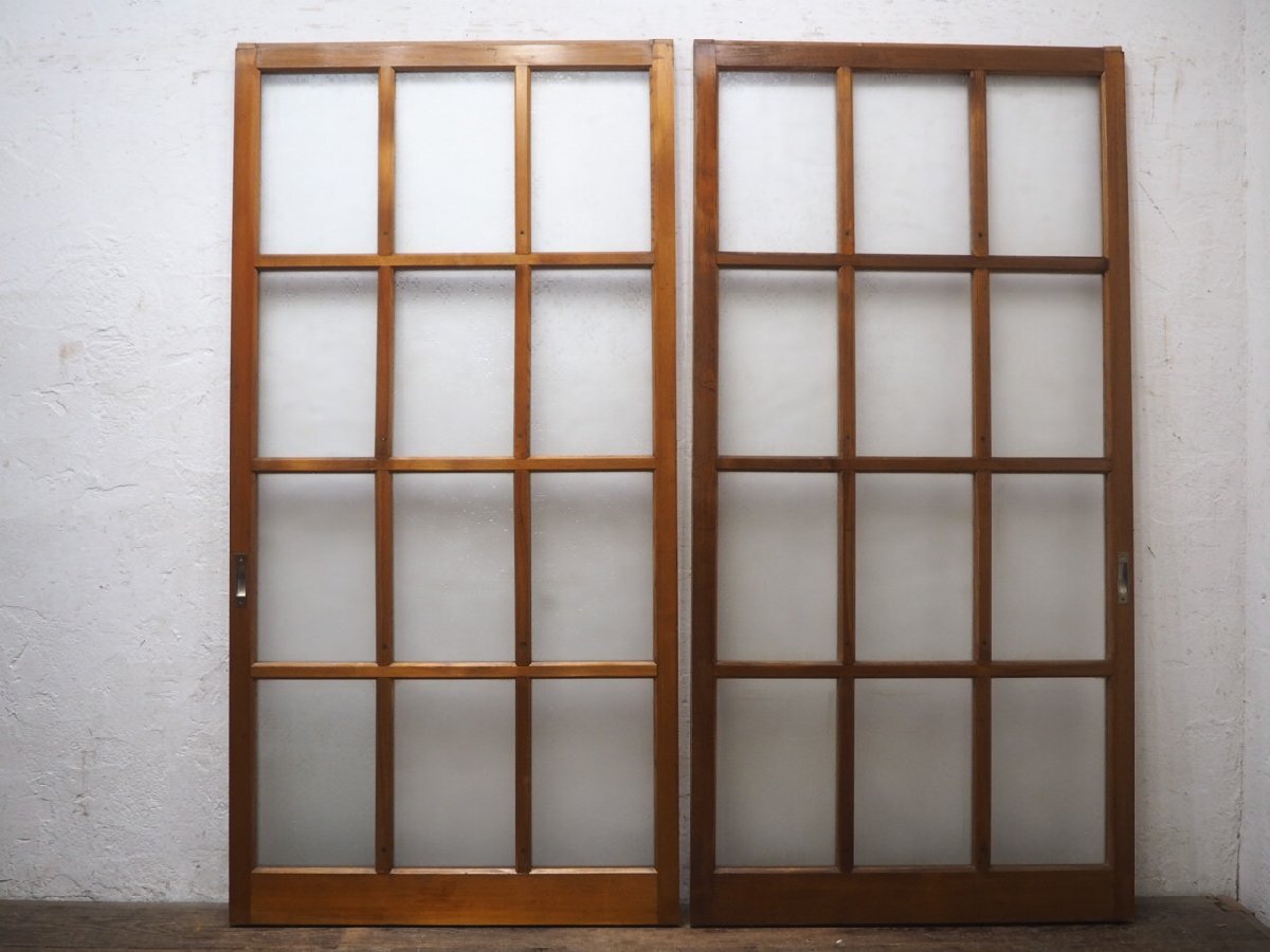 タW1645◆【H176,5cm×W88,5cm】×2枚◆昭和レトロなデザインガラスの古い木枠ガラス戸◆建具 引き戸 サッシ 内装 中古住宅 リフォームM松 收藏
