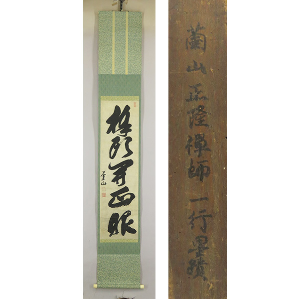 B-4400【真作】蘭山正隆① 肉筆紙本 一行書 掛軸/臨済宗 京都妙心寺首座 出羽 師・古月禅材 積翠 円機妙応禅師 墨蹟 書画 收藏