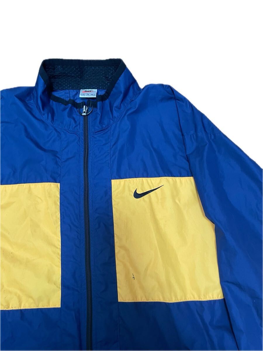 NIKE ナイキ 銀タグ 90s 古着 XL ネイビー イエロー 紺 黄色 ナイロンジャケット ヴィンテージ ロゴ スウォッシュ 收藏