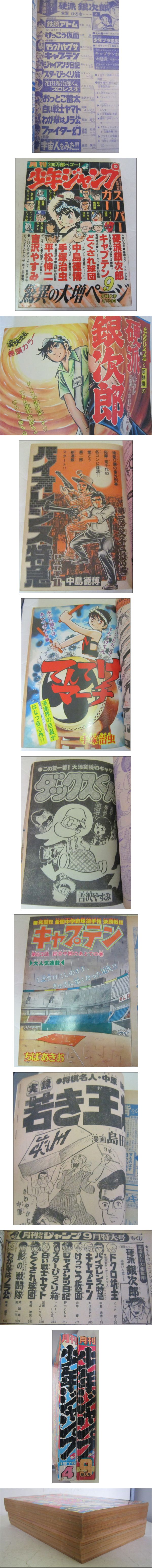| 商品説明 | 集英社発行 .月刊少年ジャンプ 1976・77年 2冊セット です。 ・写真に写っているものが全てです。 ①月刊少年ジャンプ 1976年 4月号 ●収録内容 本宮ひろ志/硬派銀次郎 手塚治虫/鉄腕アトム 永井豪/けっこう仮面 望月三起也/マシンハヤブサ ちばあきお/キャプテン 野中としお/ジャイアンツ日記 どおくまん/花田秀治郎くんプロレスす 吉沢やすみ/おっとこ雷太 高橋よしひろ/白い戦士ヤマト 菊池規子/わが輩はノラ公 島田賢司/実録 宇宙人をみた ●定価250円 ●昭和51年4月1日発行 ●B5サイズ 446ページ ②月刊少年ジャンプ 1977年 9月号 ●収録内容 本宮ひろ志/硬派銀次郎 ビッグ錠/ドクロ坊主 ちばあきお/キャプテン 永井豪/けっこう仮面 手塚治虫/てんてけマーチ 吉沢やすみ/ダックスくん 島田堅司/若き王将 ●定価270円 ●昭和52年9月1日発行 ●B5サイズ 494ページ の2点です。 ●商品状態 表紙・裏表紙にスレ、キズ、シミ、汚れ、角に折れ等があります。 中身は経年劣化による日焼け、汚れ、シミ、角に折れ等がございます。 シミ、汚れは写真以外にもございます。 ●あくまでも中古のお品ということを、 ご理解の上でのご入札をよろしくお願いいたします。  |
