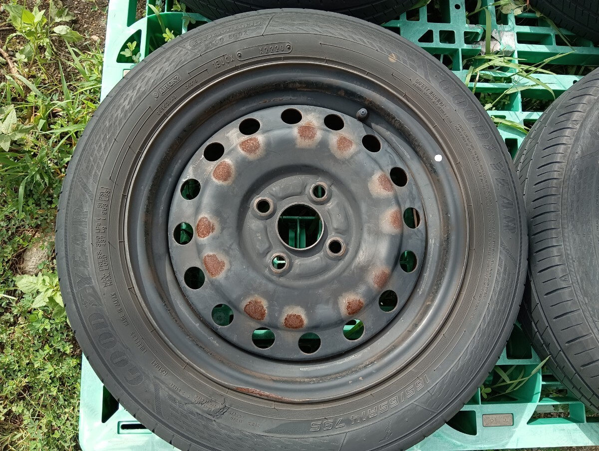 スチールホイール 14インチ 5J約+35 PCD100 4穴/タイヤ GOOD YEAR Efficient Grip 165/65R14 2020年製 4本 IW53-3 收藏