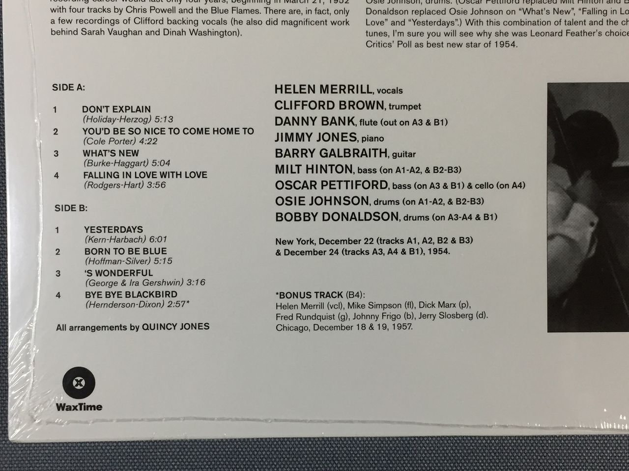 未開封 匿名配送&補償付 ヘレン・メリル 丁寧な梱包 美品 EU盤 重量盤 ジャズ レコード Helen Merrill With Clifford Brown 1LP Jazz 收藏