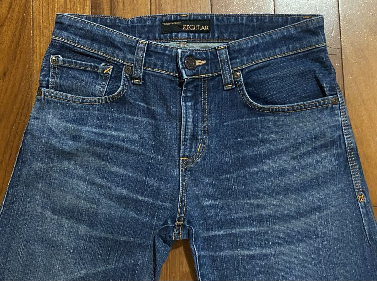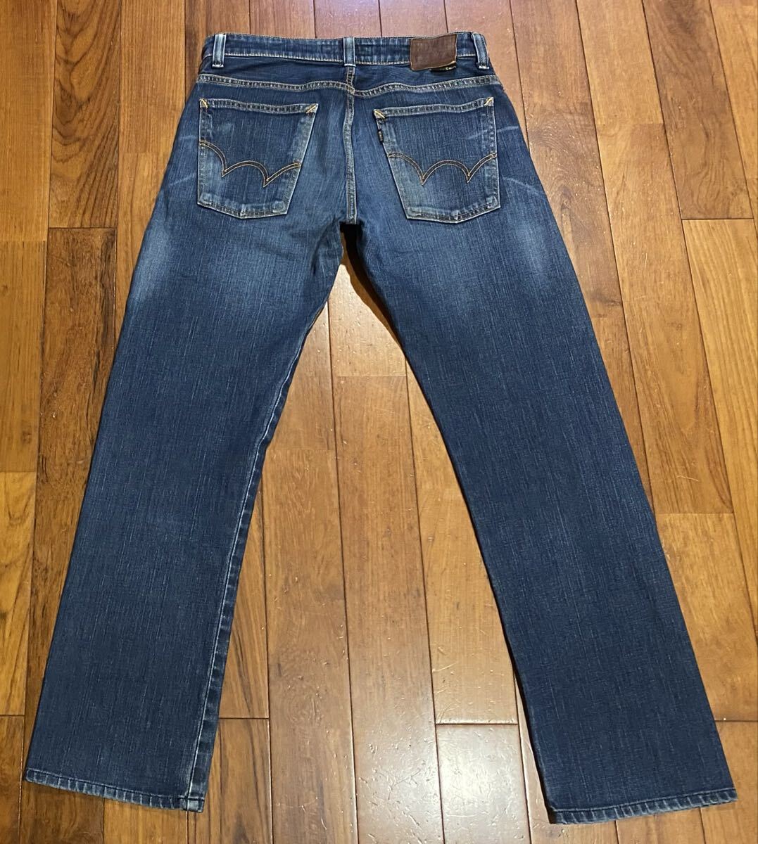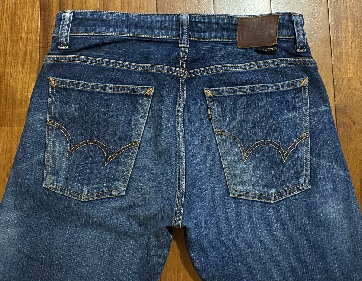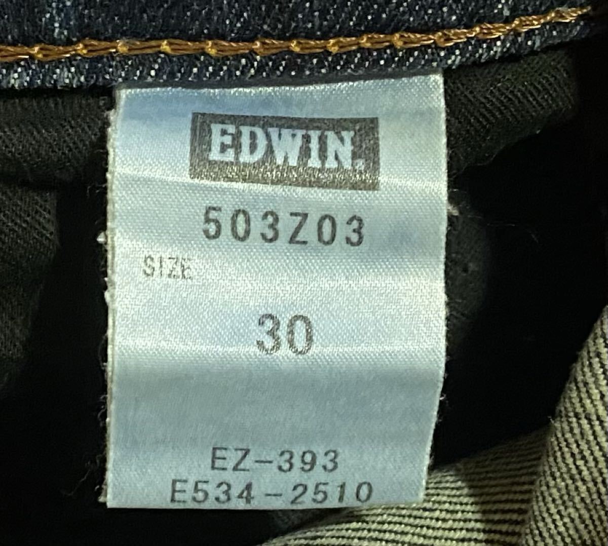 エドウィンのストレッチデニム(ジーンズ)、503 ZERO REGULAR 503Z03です。色はインディゴブルーです。USEDで裾直ししておりますが状態は良いです(10段階中8程度)。生地はストレッチ入りで綿98%、ポリウレタン2%です。牛革パッチ、ジッパーフライです。正規品です((株)エドウイン商事、日本製)。サイズはW30でウエストは重ねずに平置きで約76cm、ヒップ約96cm、股上約25cm、股下約75cm、股下15cmのふともも部分約49cm、裾まわり約38cm、重量約560gです。発送はゆうパケットポストになります。
