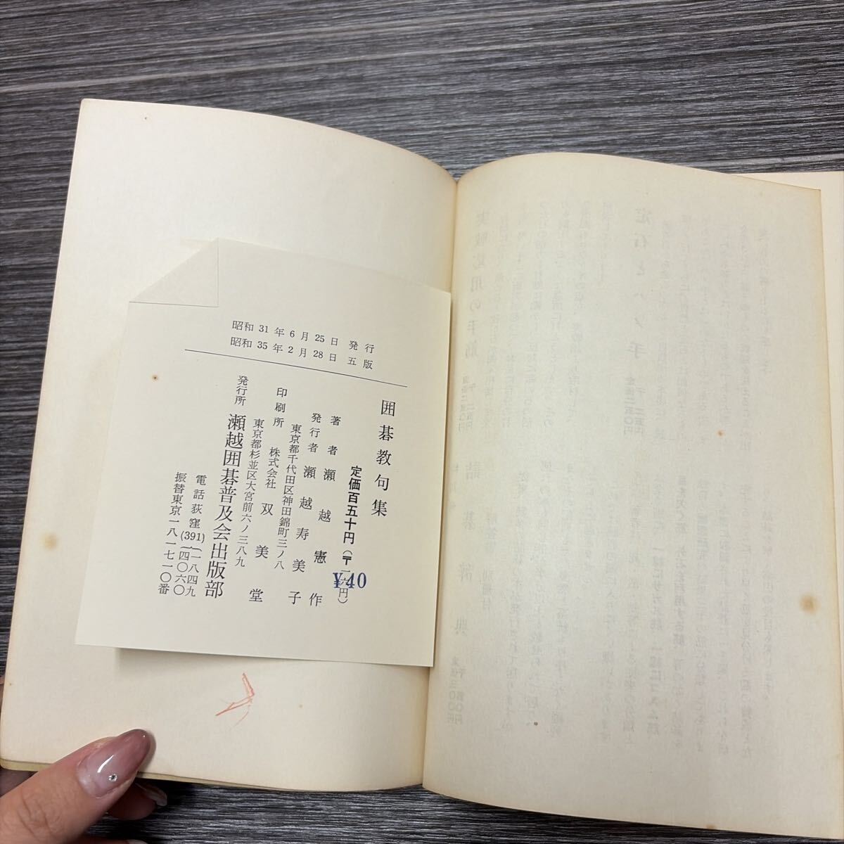囲碁教句集 囲碁例句集 九段 瀬越憲作 昭和35年/瀬越囲碁文庫第三集/クシ形/技術/技法/攻撃/型/大ザル八目/趣味/教養/試合/対戦 ★3909-2 收藏