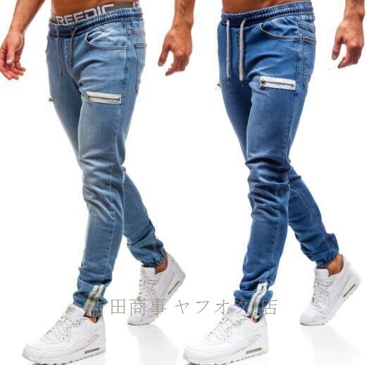 ☆新品メンズ チノパン ジョガーパンツ スウェットパンツ ゴム ジーンズ デニムパンツ ジーパン スキニーパンツ ストレッチパン ブルー 收藏