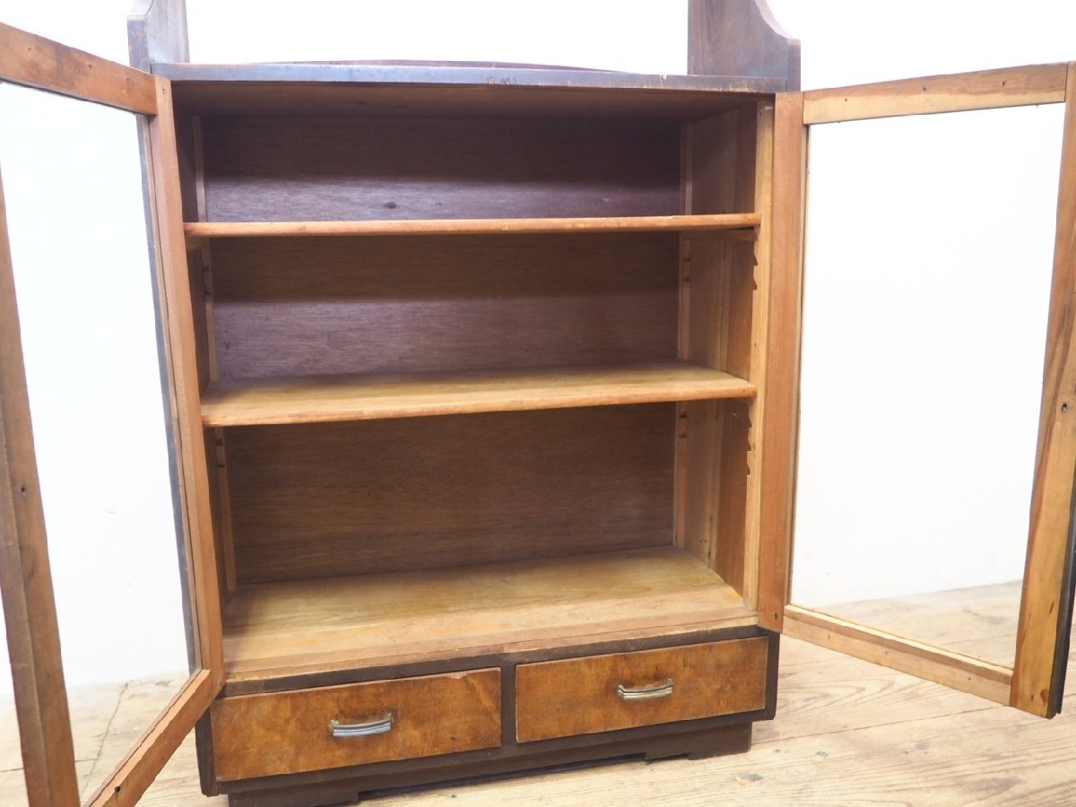 タD0414◆H109,5cm×W73cm◆アンティーク◆味のある古い木製ガラスケース◆飾り棚 収納棚 キャビネット 古家具 和モダン カフェ レトロM松 收藏