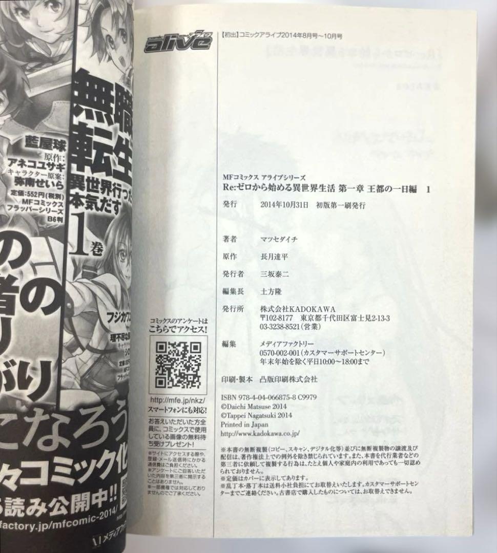 【初版】Re:ゼロから始める異世界生活 コミックセット 收藏