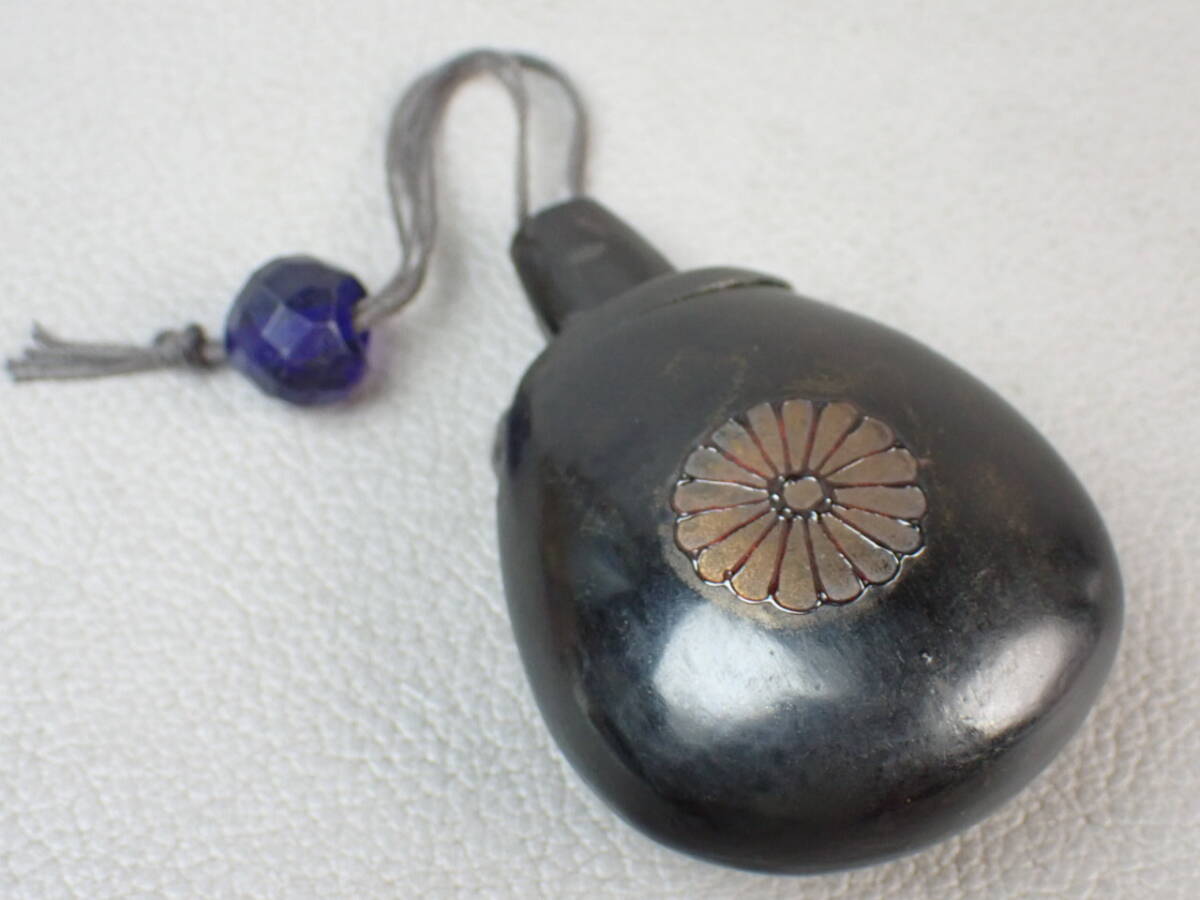 【骨董・武具】★古い 提物★★菊御紋煙硝入 火薬入 gp077sl33 根付 緒締 火縄銃 銃装具 古民芸 狩猟道具 マタギ 收藏