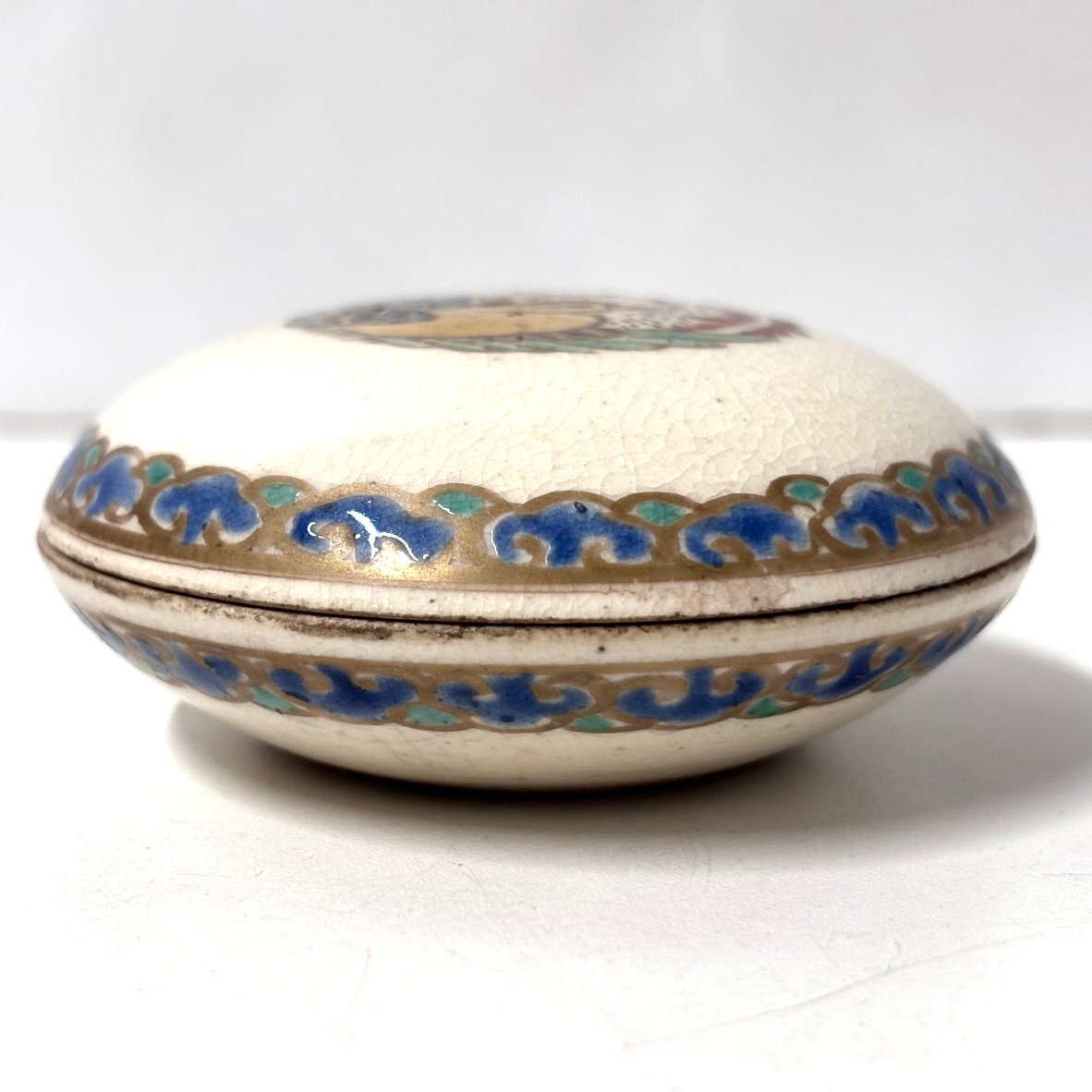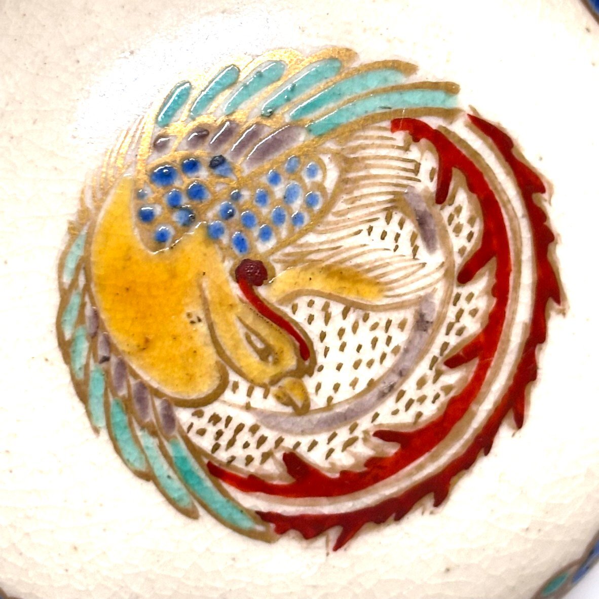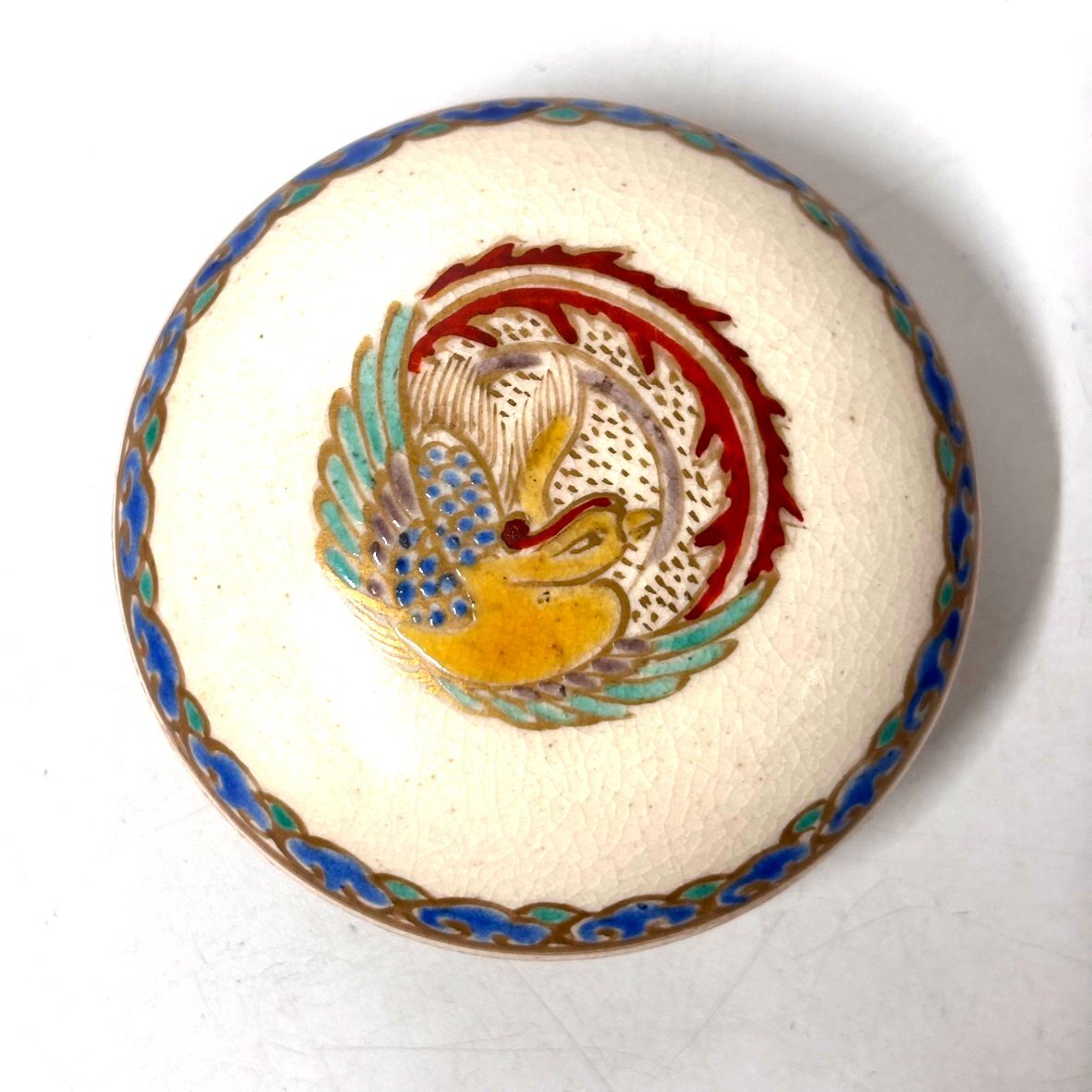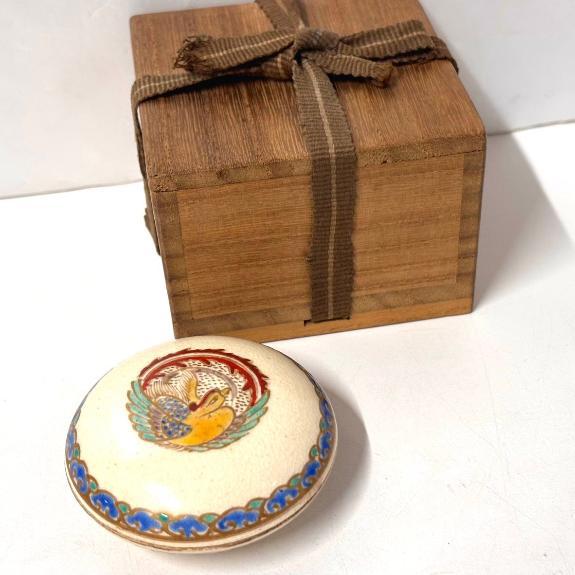 【41】【併売・店頭引取可】京焼 仁清窯 色絵鳳凰香合 箱付き 直径6.8cm×高さ3m 陶磁器 香道 茶道 伝統工芸 長期保管品 收藏